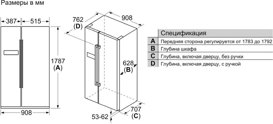 Расположение морозильной камеры: сбоку (Side by Side)
