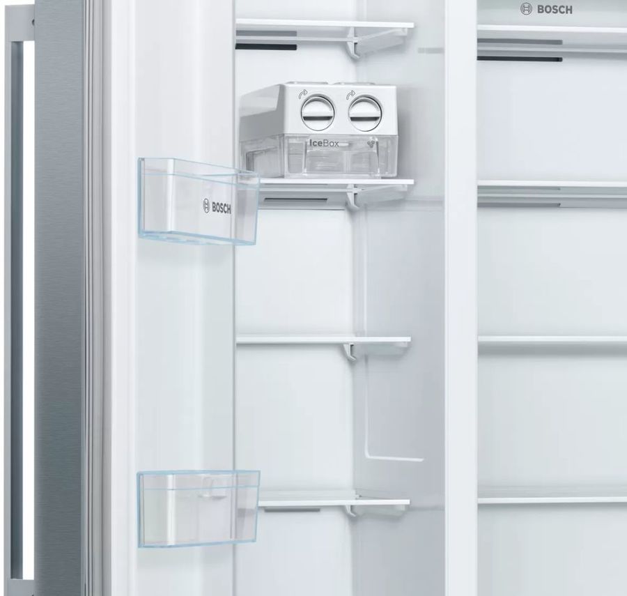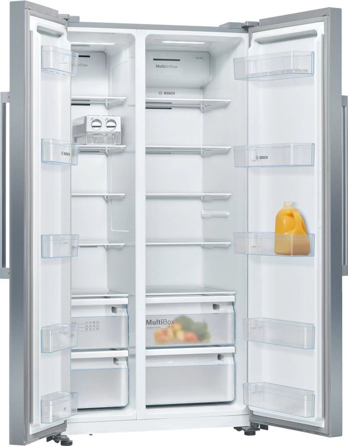 Вместительный холодильник BOSCH KAN93VL30R выполнен в стильном дизайне, в цветовом решении «нержавеющая сталь». Отличается низким энергопотреблением и практически бесшумной работой. Боковое расположение большого морозильника объемом 165 л удобно для закладки продуктов и их извлечения в кухне даже небольшой площади или неудобной конфигурации. Размораживание производится с использованием технологии No Frost.