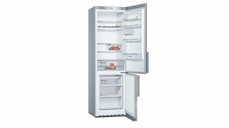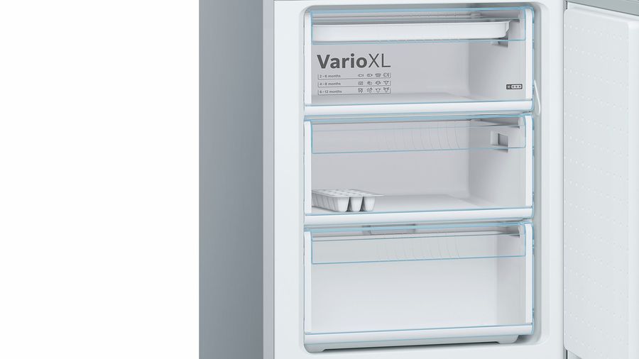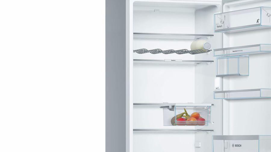 Особенности холодильной камеры Светодиодное освещение в холодильной камере; VARIO XL — больше уровней для стеклянных полок.
