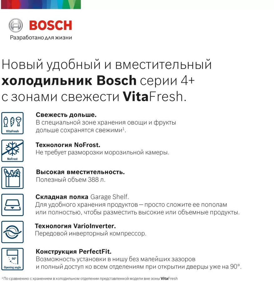 Дополнительно: Serie 4. 2 контура охлаждения, полностью электронная регулировка температуры. Оптическая и акустическая система сигнализации для холодильного и морозильного отделения.