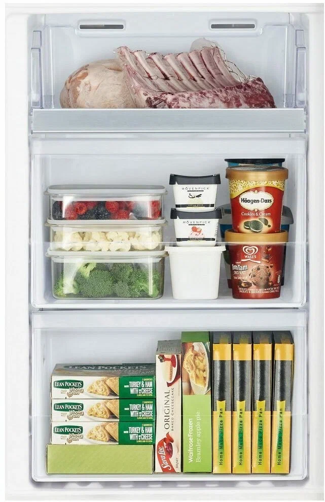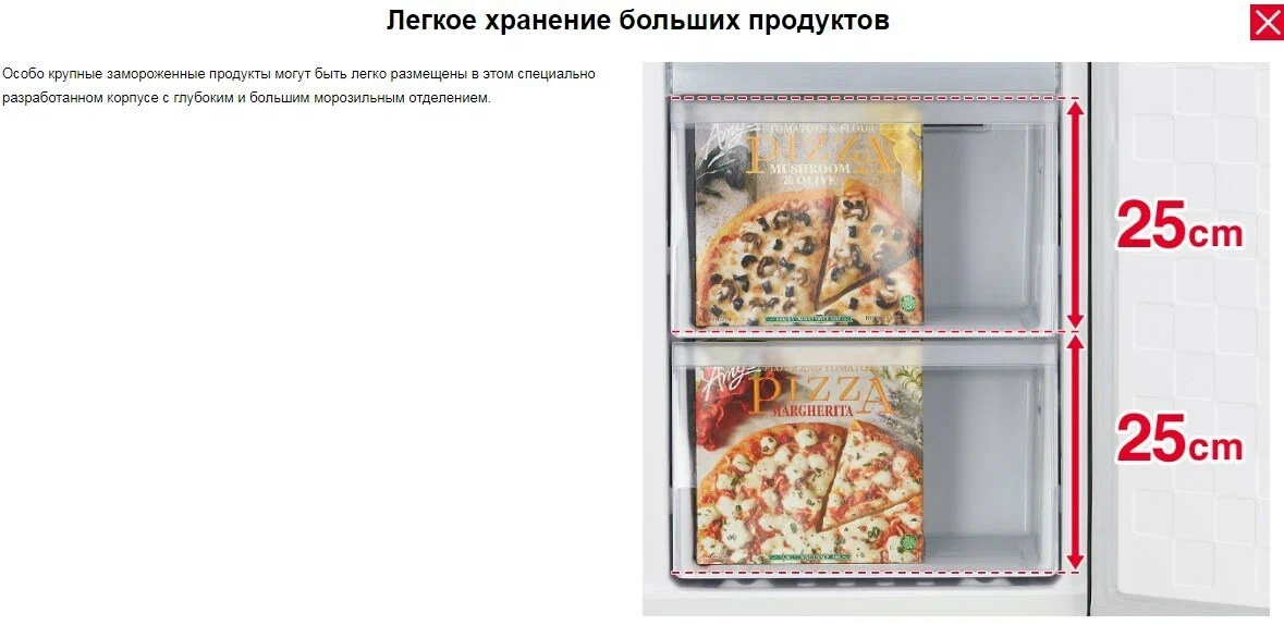 В отделении двойного назначения поддерживается необходимая температура и влажность для хранения овощей, фруктов, мясных и молочных продуктов.