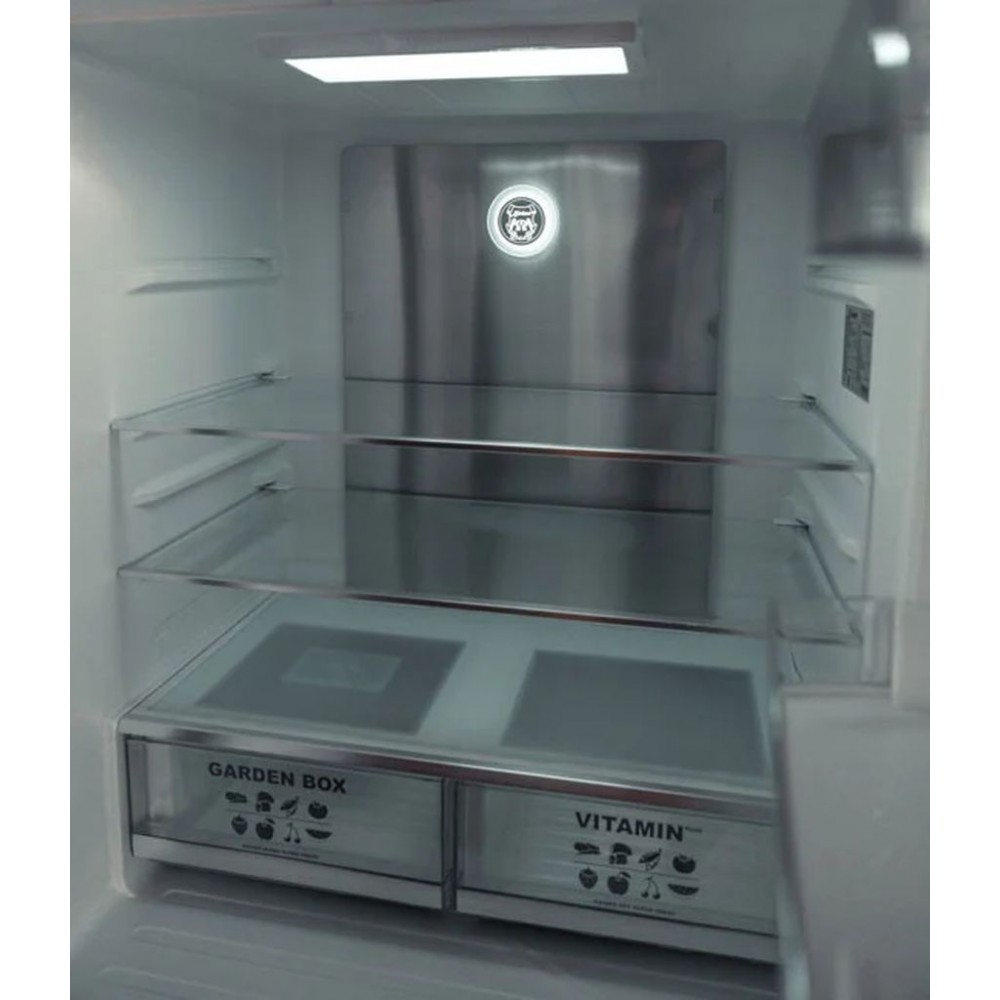 Внутренняя организация Вертикально регулируемые полки с высококачественным защитным стеклом : 2 Бокс для овощей /фруктов : 4 Выдвижные контейнеры МУЛЬТИБОКС : 8 Дверные отсеки : 3 Лотки для яиц : 1 Морозилка:Выдвижные ящики морозильной камеры : 2 Полки: 5 Коробка для супер-льда : 1