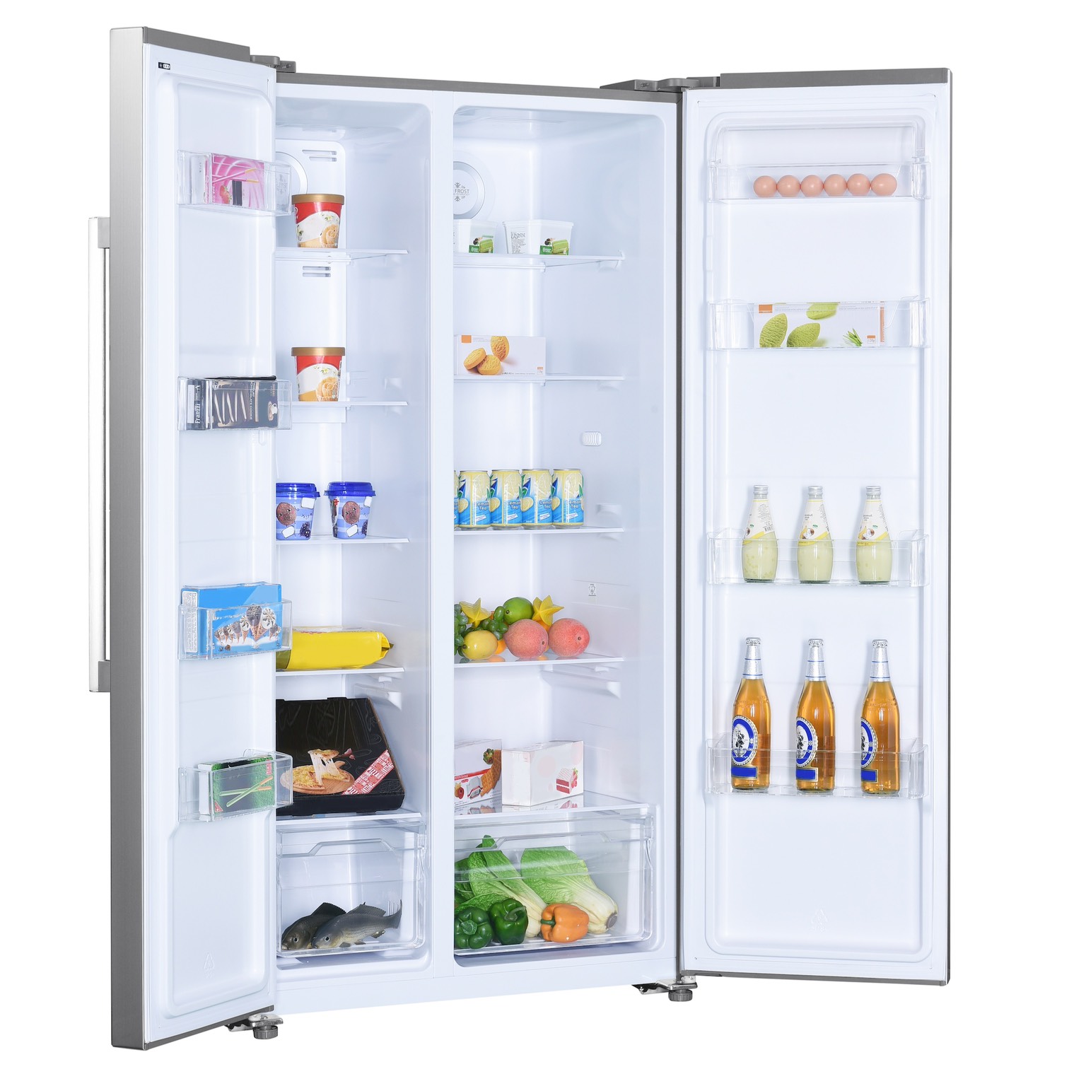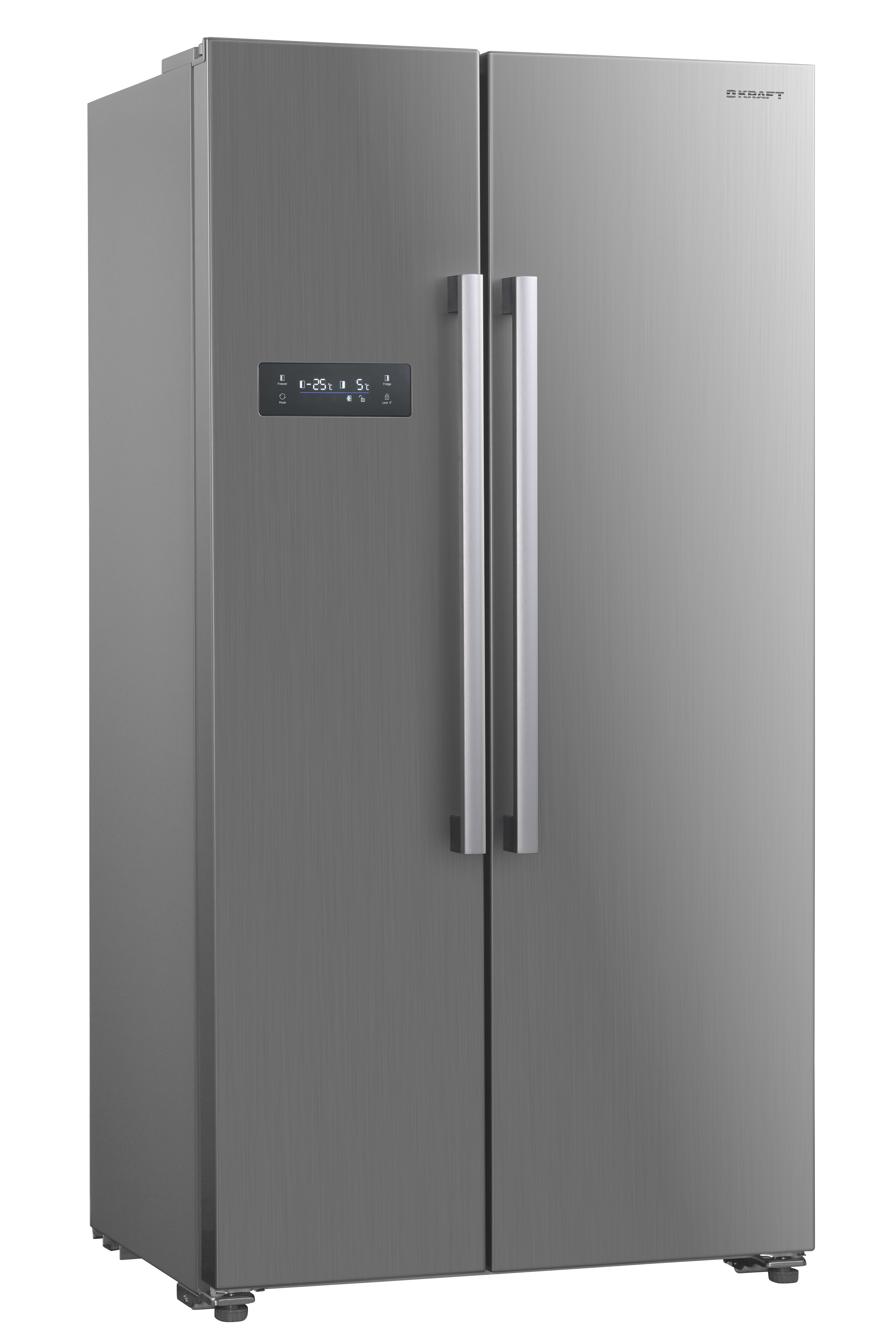 Холодильник с распашными дверями (Side-by-Side) Kraft KF-MS3575S изготовлен из качественных материалов, благодаря чему сохраняет первоначальный вид даже при длительной эксплуатации. Полки изготовлены из закаленного стекла. Общий объем холодильника составляет 589 л, что позволяет долгое время поддерживать свежесть большого количества пищи. Морозильный отсек располагается слева и вмещает 187 л. Основная холодильная камера вмещает 356 л. На сенсорном дисплее отображается температура каждого отделения внутри устройства. Для того, чтобы продукты дольше сохраняли свежесть, предусмотрена многопоточная система охлаждения Multi-Flow System. Холодный воздух внутри разделяется и равномерно обдувает продукты со всех сторон.