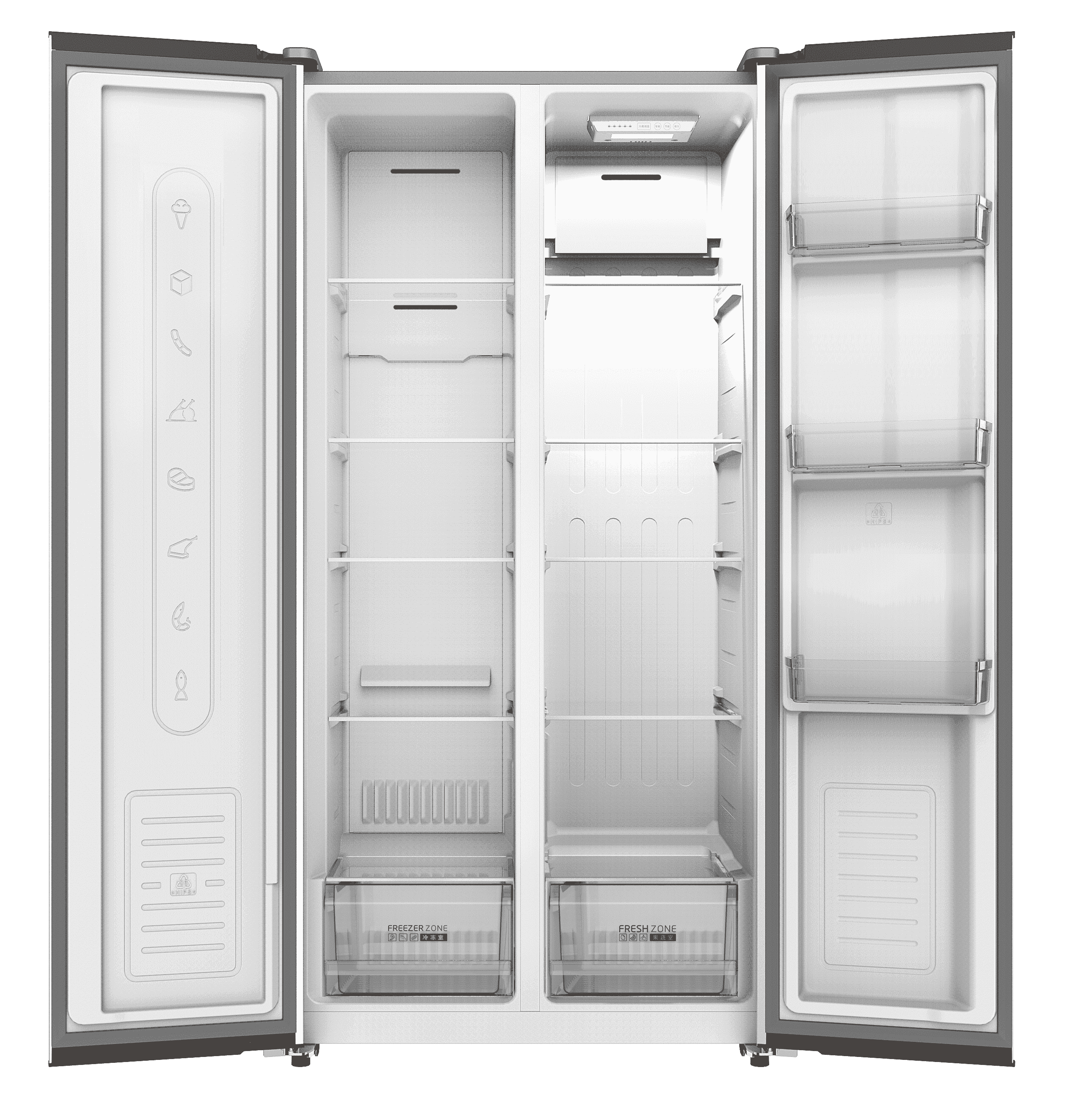Холодильник с распашными дверями (Side-by-Side) Kraft KF-MS4400S изготовлен из качественных материалов, благодаря чему сохраняет первоначальный вид даже при длительной эксплуатации. Полки изготовлены из стекла. Полезный объем холодильника составляет 440 л, что позволяет долгое время поддерживать свежесть продуктов. Морозильный отсек располагается слева и вмещает 193 л. Основная холодильная камера вмещает 267 л.