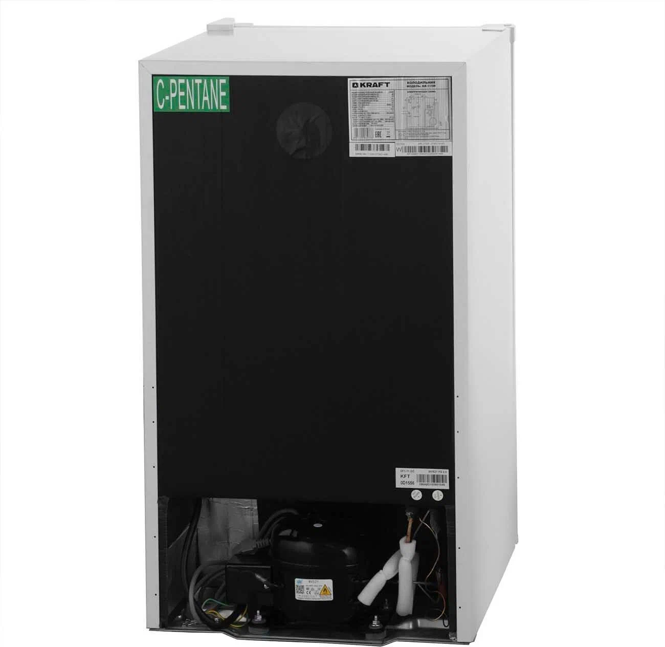 Kraft KR-115W – компактный холодильник с полезным объёмом 98 литров, 10 из которых занимает морозилка. Модель отлично подходит для небольшой семьи и для использования на даче. Дверь можно навесить на выбор справа или слева, так что проблем с размещением точно не возникнет.