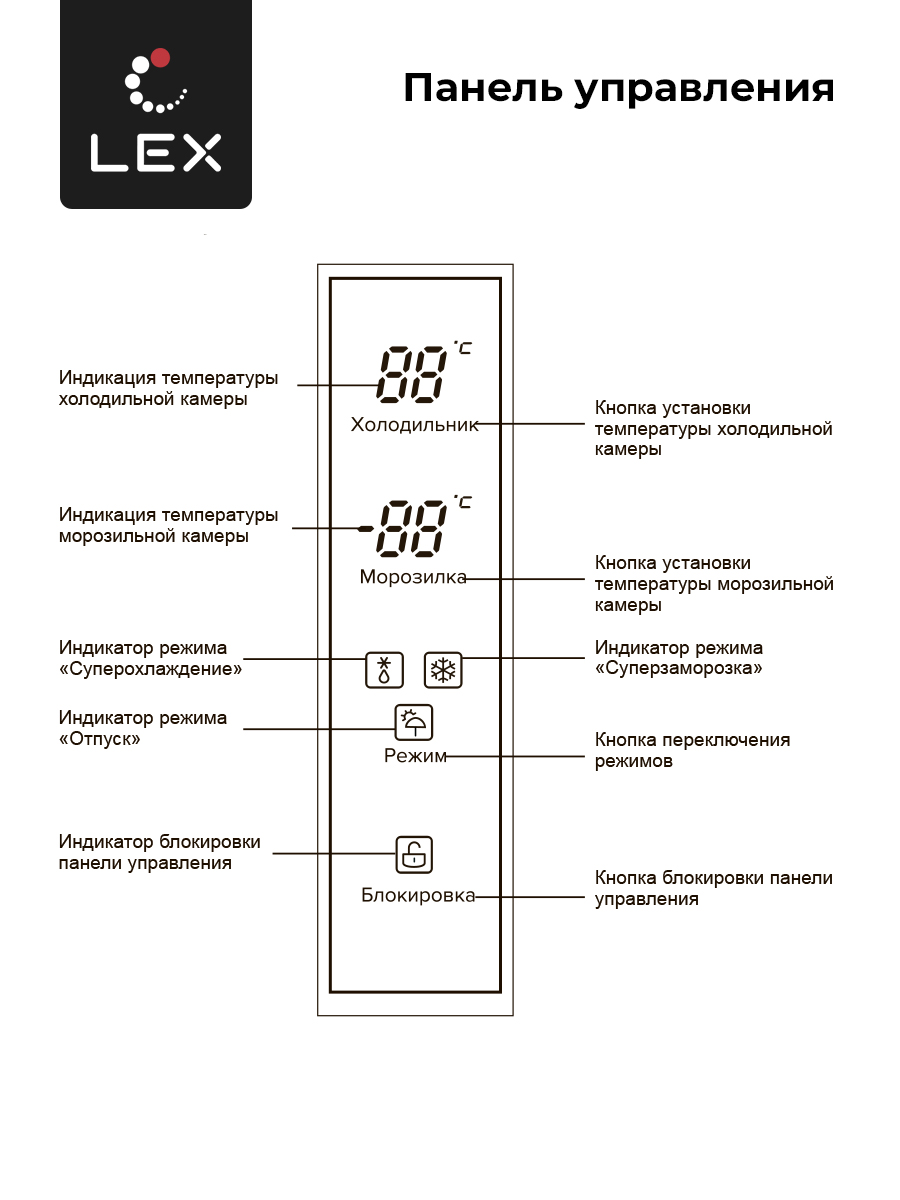 Блокировка панели управления, Режим «Отпуск», Суперзаморозка, Суперохлаждение