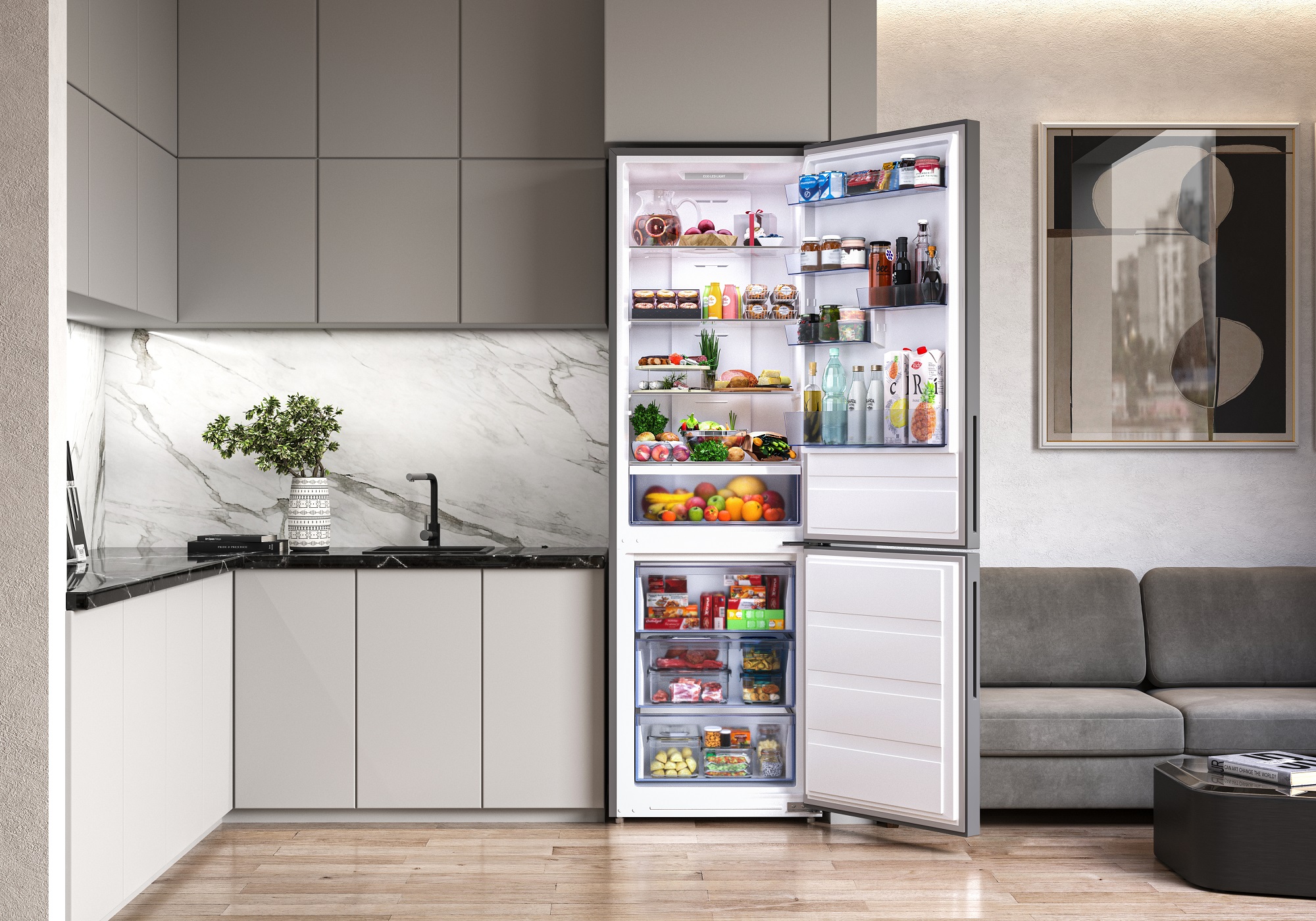 В холодильной камере – 4+2 / В морозильной камере – 3