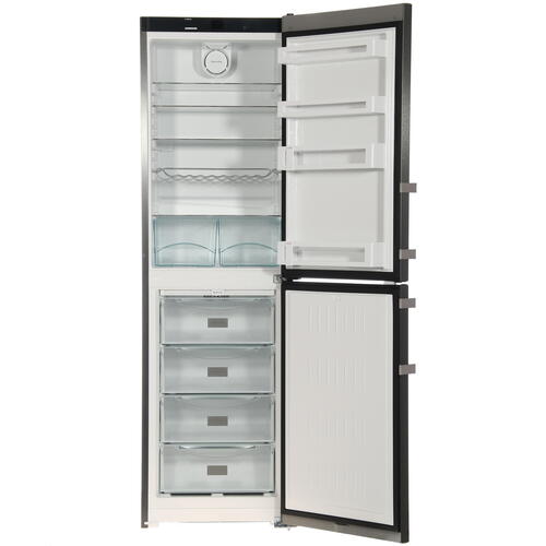 Дополнительно 4 выдвижных ящика в морозилке, регулируемые по высоте полки, ручка с толкателем , количество балконов на дверке 4 шт, 4 полки расположены в холодильном отсеке, покрытие с защитой от отпечатков пальцев, 2 ящика в холодильном отделении, светодиодное освещение , 1 складная полка