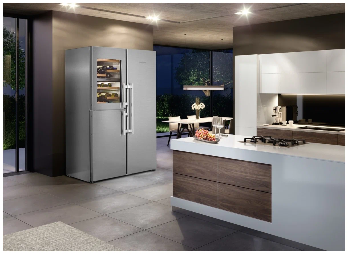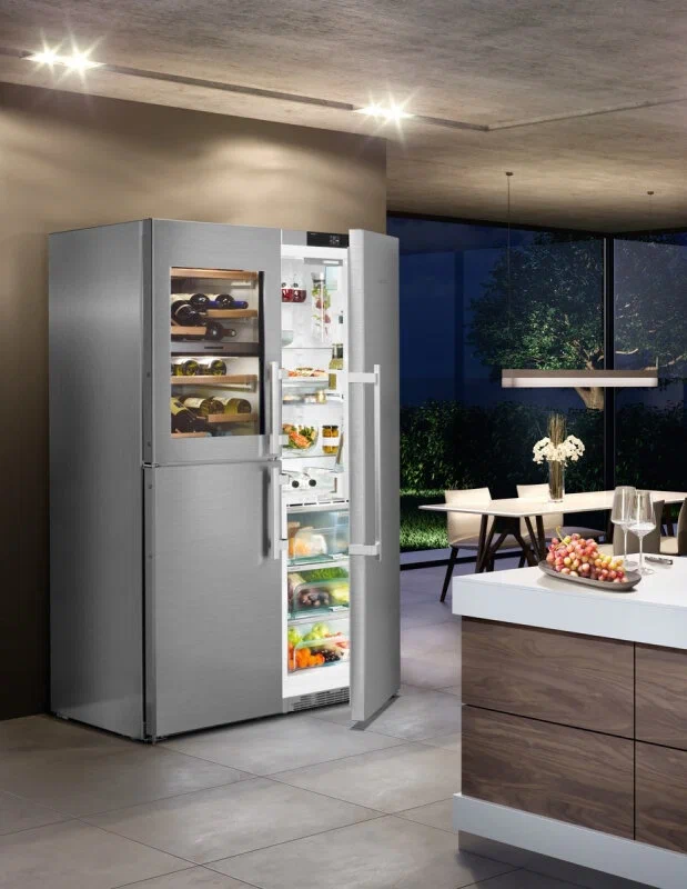 Side by Side, дисплей, ручка с толкателем, с винным шкафом, складная полка