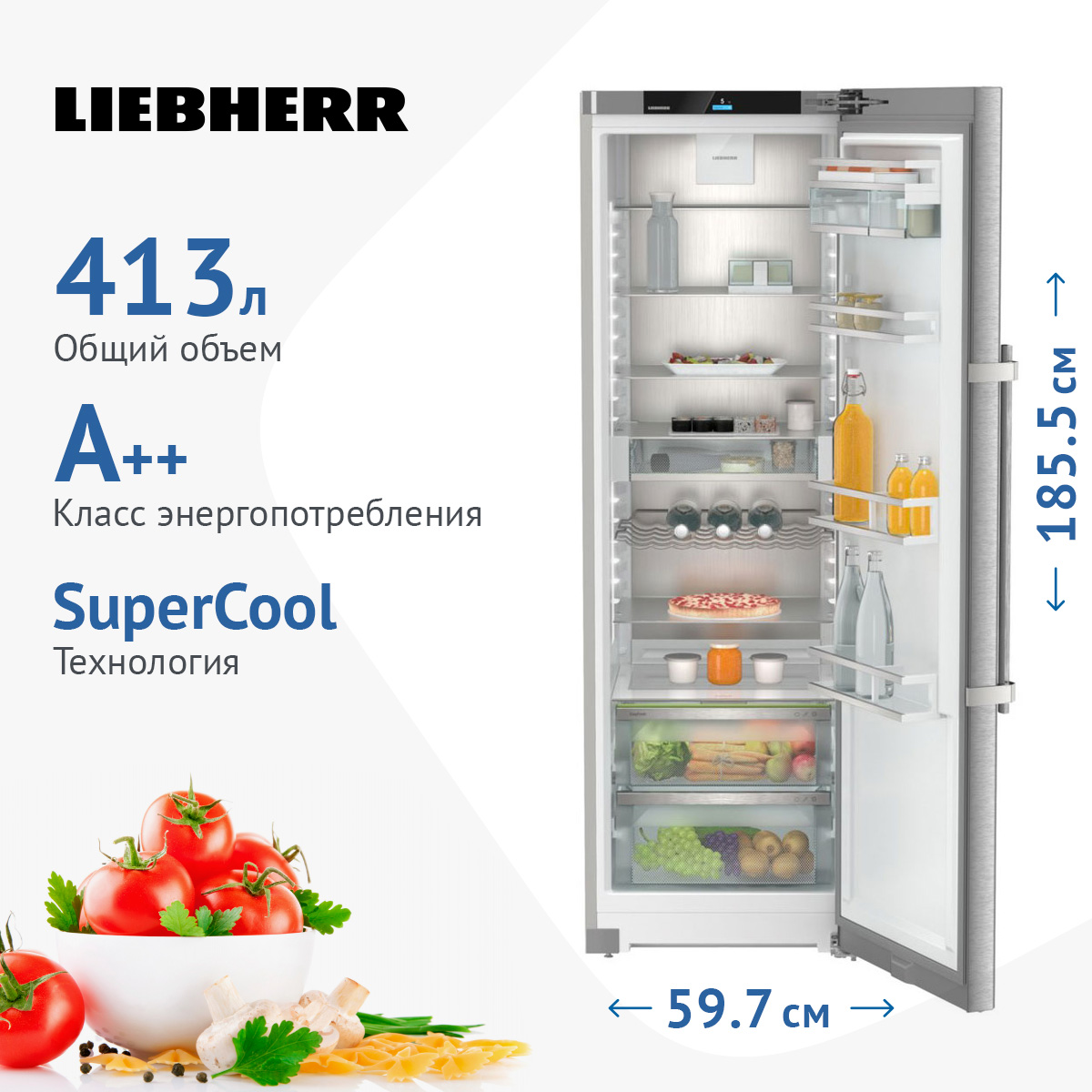 Цвет: дверь - нержавеющая сталь со SmartSteel, боковые стенки - серебристый