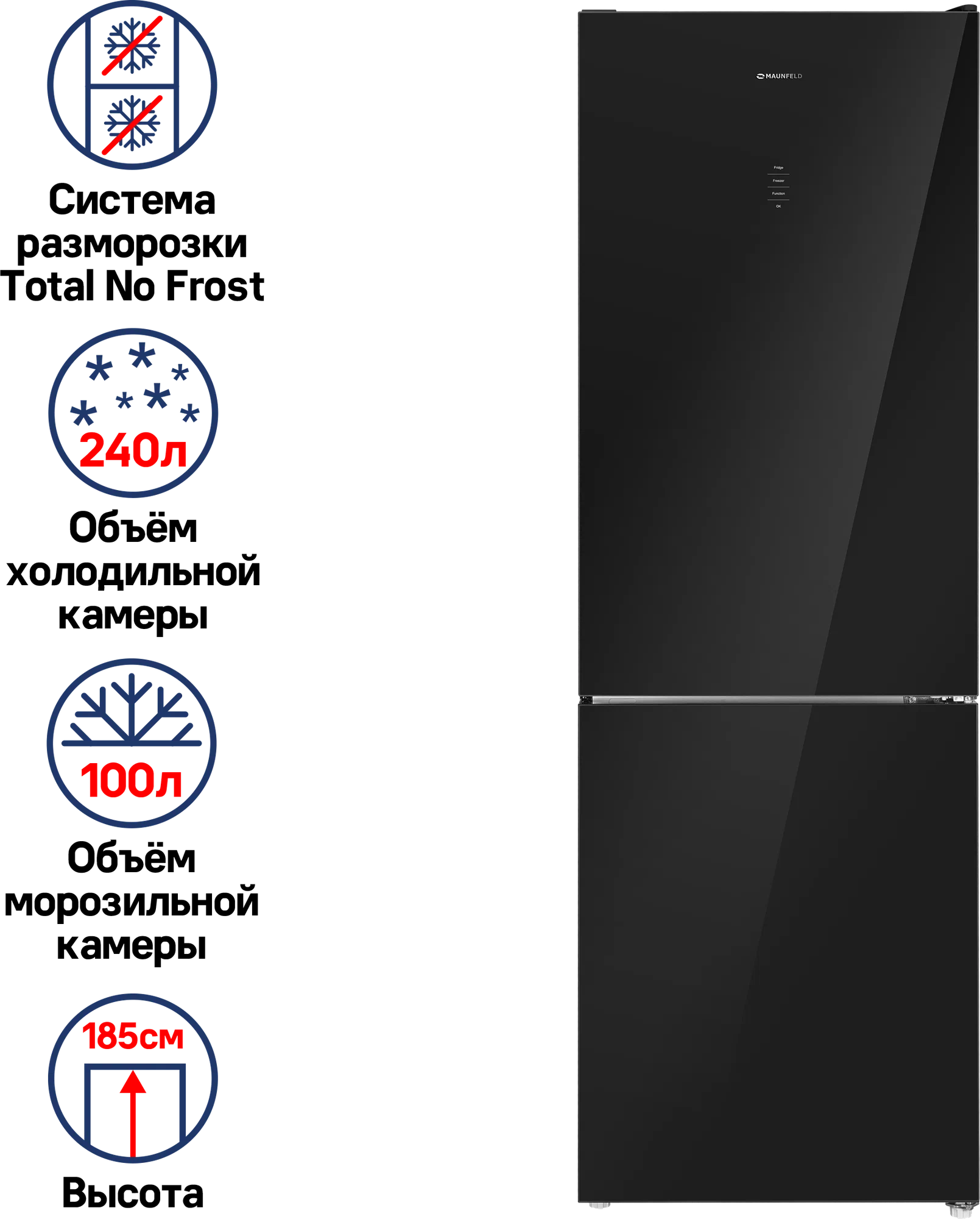 полезный объём, 317 л; сенсорное управление; стеклянные фасады дверей