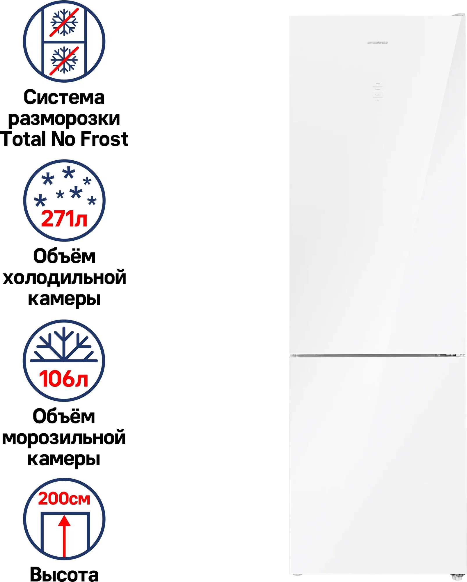 полезный объём, 351 л; полный NoFrost в холодильном и морозильном отделениях; сенсорное управление; материал фасада - стекло