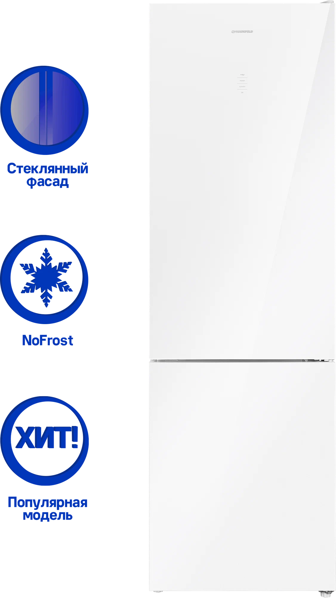 Двухкамерный холодильник с сенсорным управлением. Фасады дверей выполнены из закаленного стекла. Современная система охлаждения No