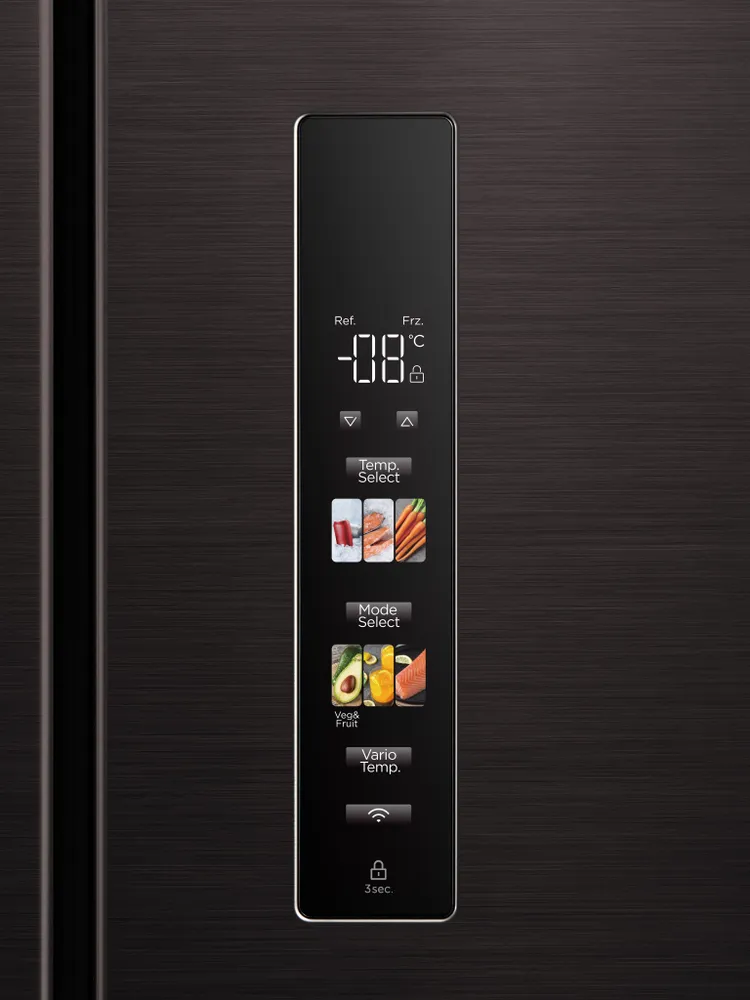 Особенности холодильника: Full No Frost, Антибактериальное покрытие камеры, Дисплей, Зона свежести, Светодиодная подсветка, Система контроля влажности, Скрытые ручки, Суперзаморозка, Суперохлаждение
