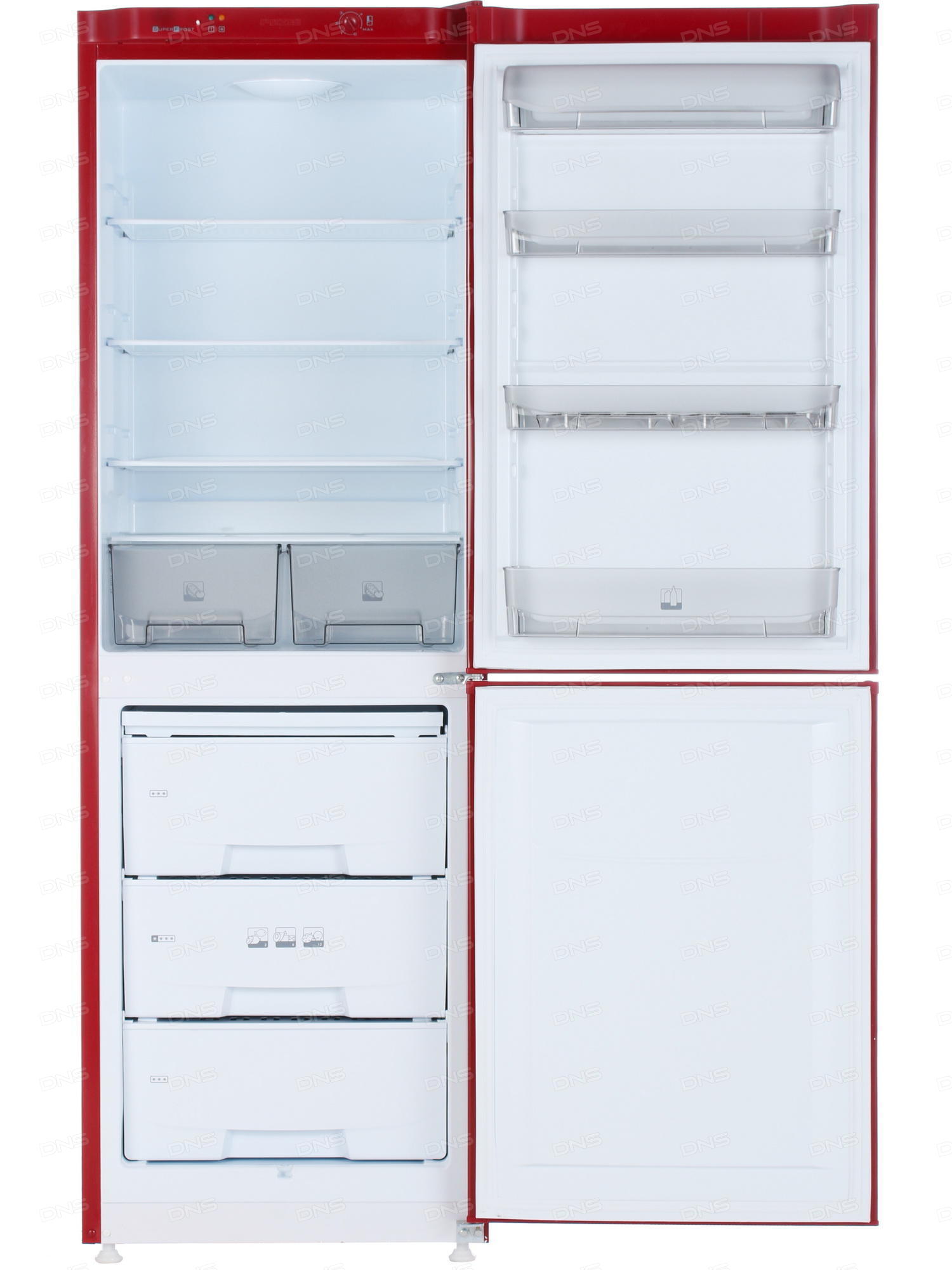 регулируемые по высоте полки, светодиодное освещение, 4 полки на дверце, 4 полки в холодильной камере