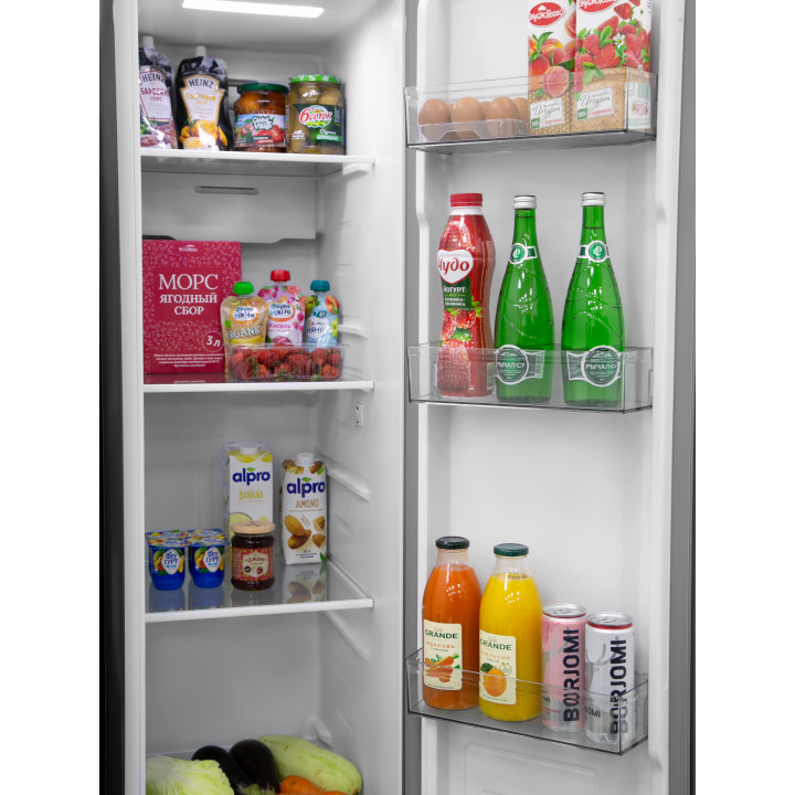 4 полки на дверце холодильника, 3 полки на дверце морозильника, Встроенная ручка