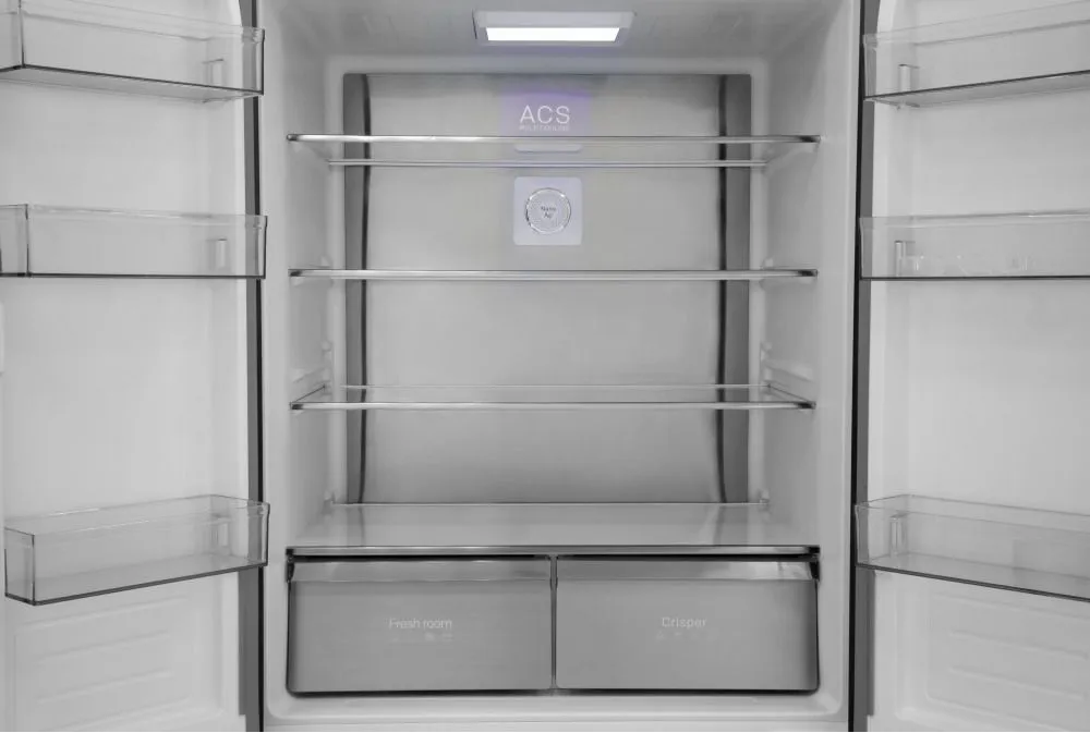 Особенности холодильника: Full No Frost, Антибактериальное покрытие камеры, Дисплей, Светодиодная подсветка, Суперзаморозка, Суперохлаждение, Скрытые ручки
