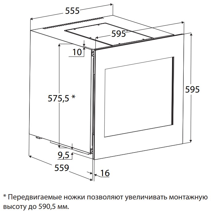 Размеры ниши (ШхГхВ) 560х560х580 мм