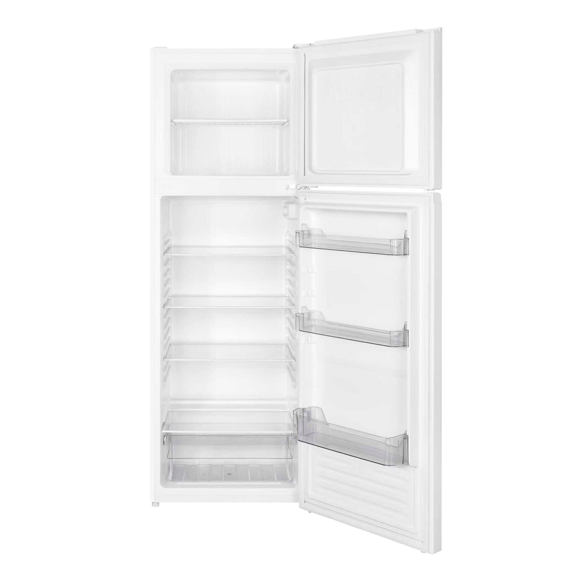 Холодильник WILLMARK RFT-465W — современный двухкамерный холодильник в белом цвете общим объёмом 342 литров со всеми необходимыми функциями. Модель совмещает в себе стильный дизайн, отличные технические характеристики и высокие эксплуатационные качества. Верхнее расположение морозильной камеры. Данная модель изготовлена по системе размораживания DEFROST, которая сохраняет ваши продукты свежими в течение долгого времени. Двери холодильника перенавешиваемые. В морозильной камере есть дополнительная полка и форма для заморозки льда на 10 ячеек. Холодильная камера снабжена четырьмя полками из стекла, три из которых регулируются по высоте, выдвижным ящиком для хранения продуктов, регулятором температуры охлаждения и лампой. На внутренней части двери холодильной камеры расположены 3 дверных полки.