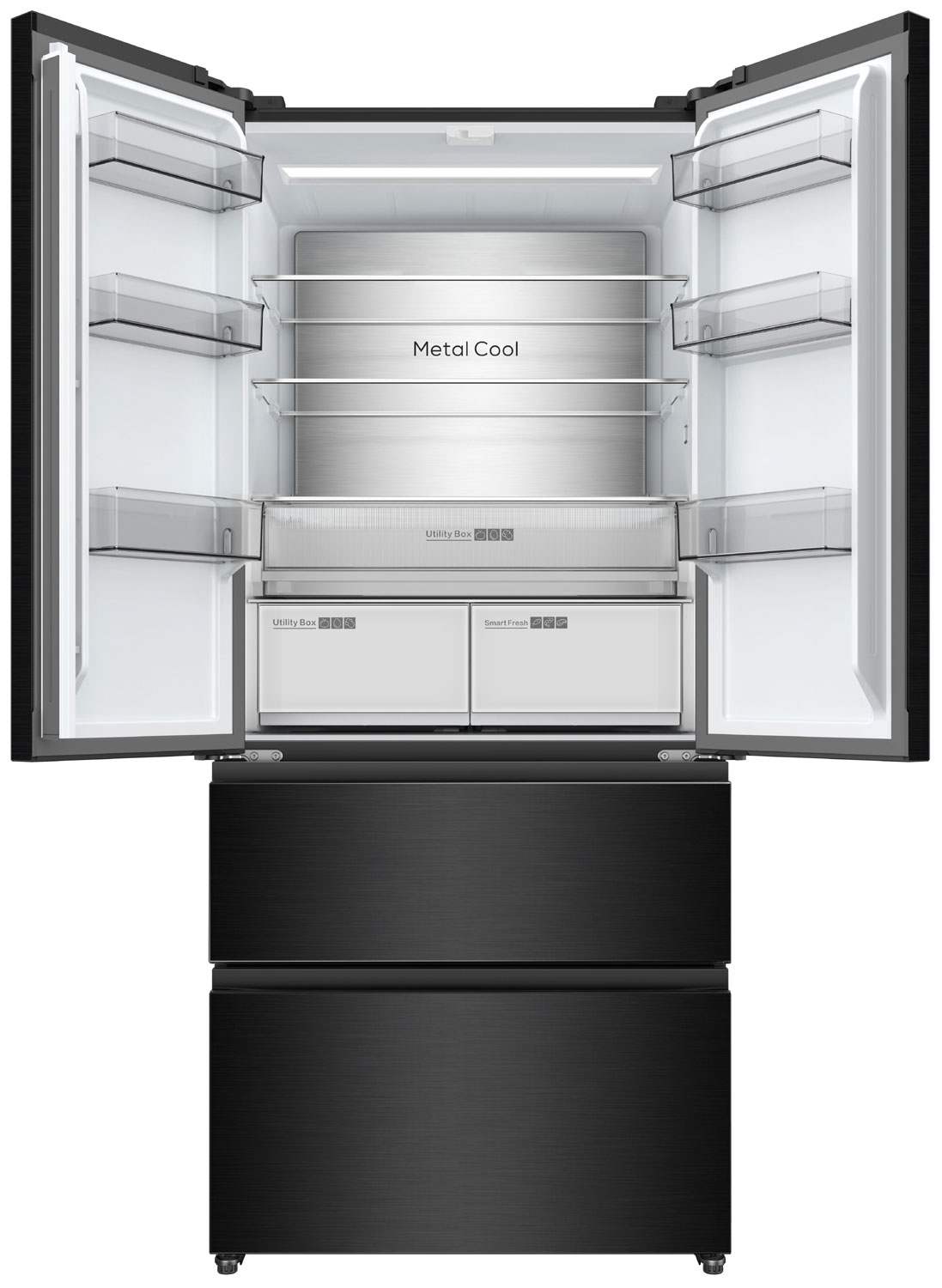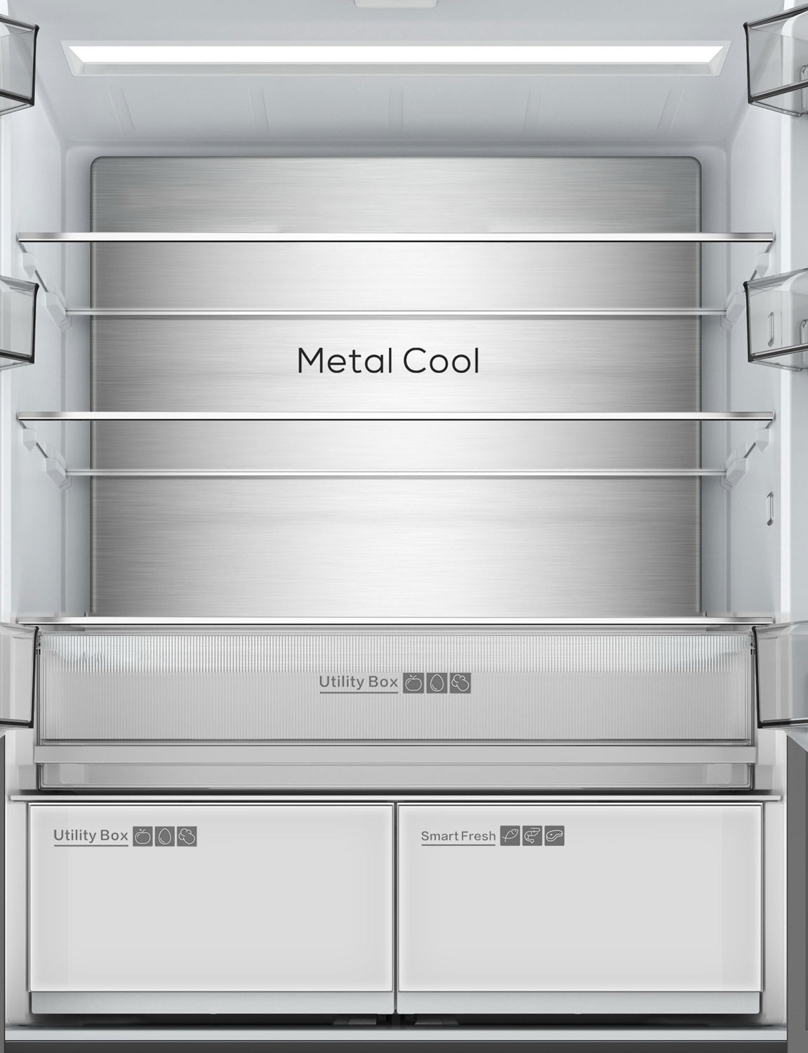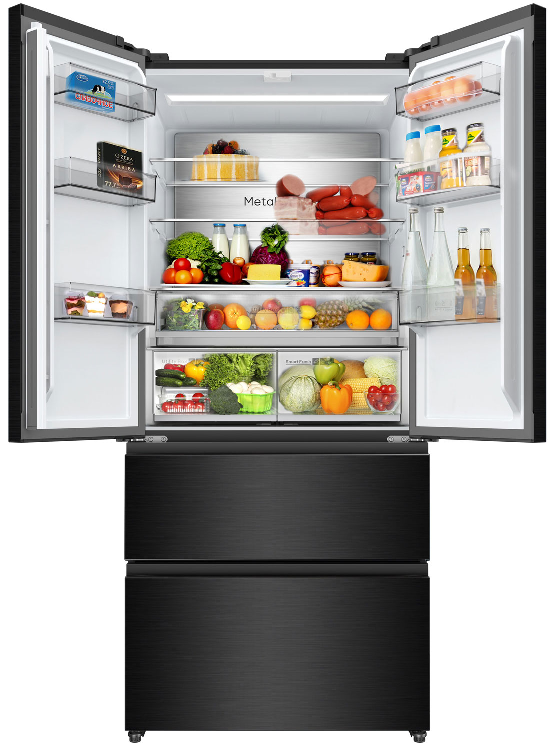Полки и ящики со стальным обрамлением, Зона свежести Smart Fresh с регулировкой температуры от -3 до 4°С, Особая конструкция и теплоотвод позволяют встроить прибор в нишу