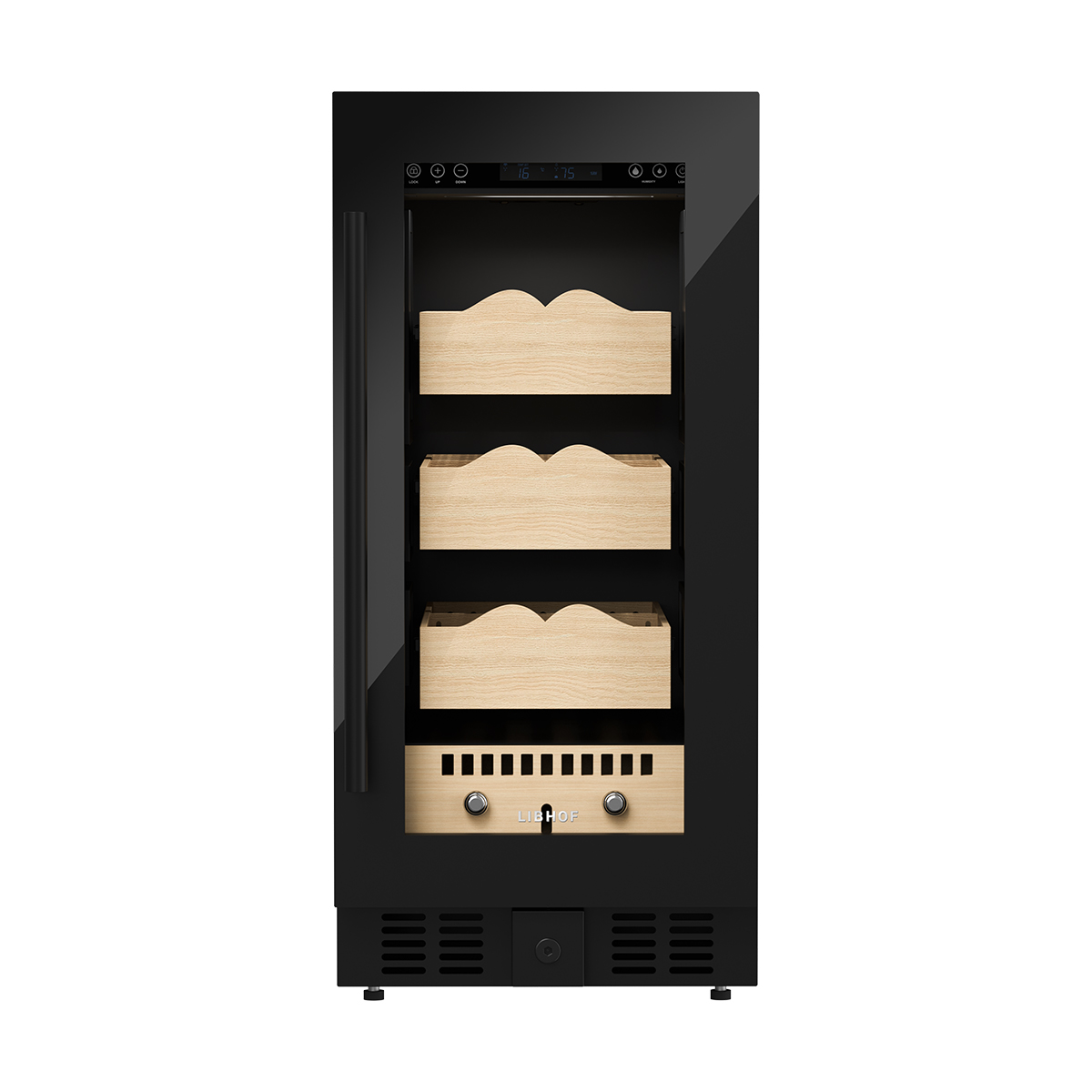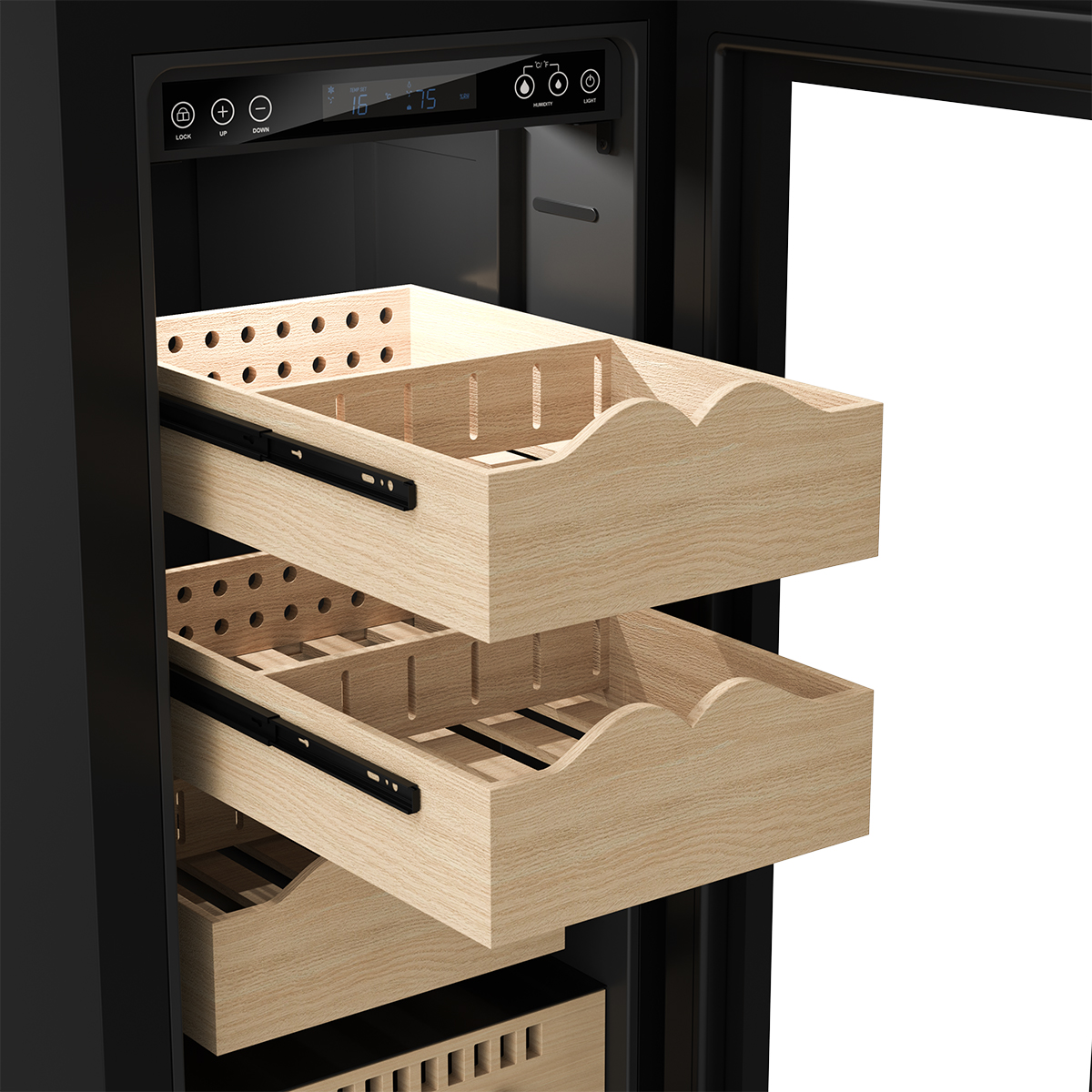 инструкция, комплект ключей замка, крепеж для ручки, погружной увлажнитель, полки из натурального испанского кедра, резервуар для воды, ручка, Шкаф для сигар
