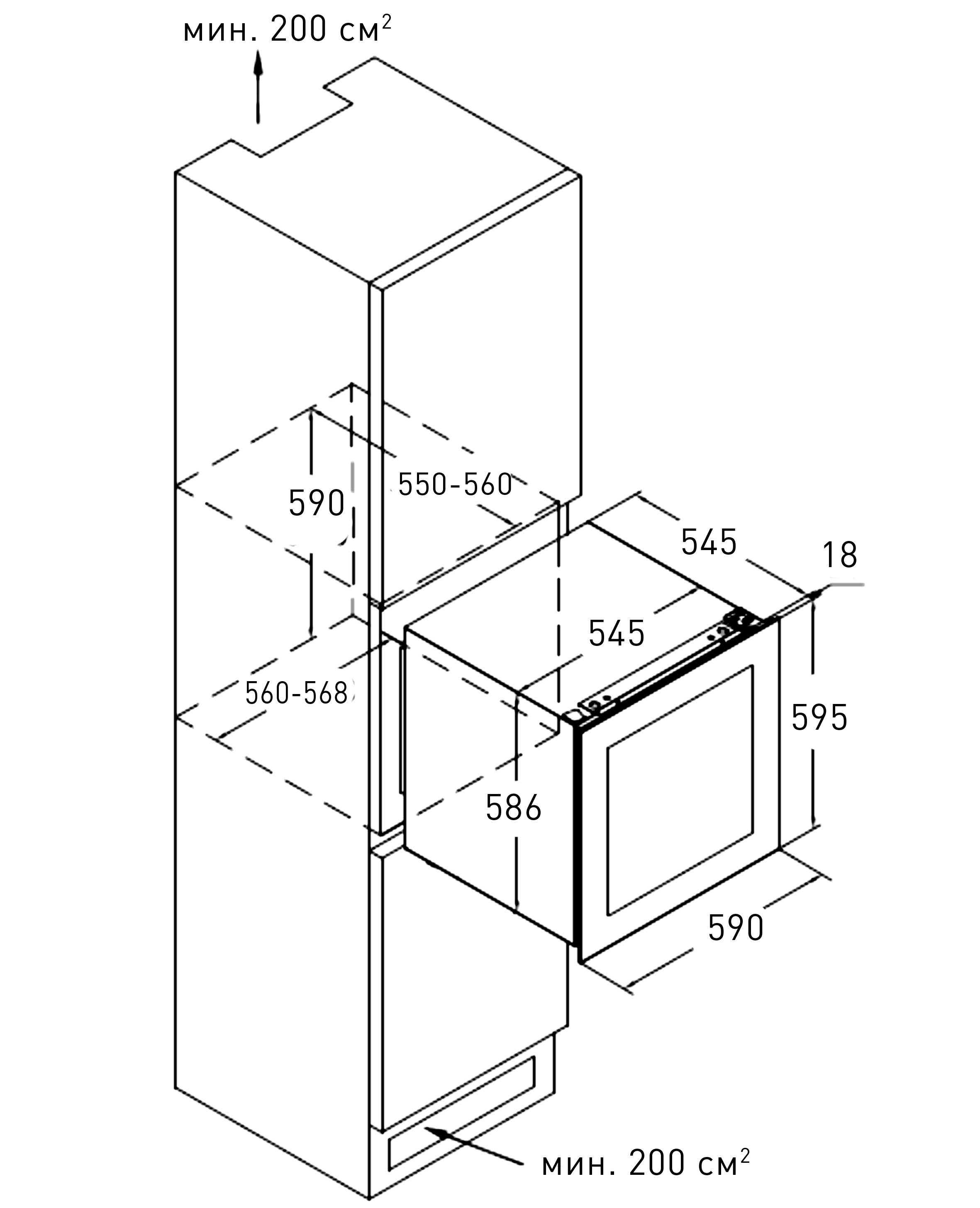 Размеры ниши для встраивания (ВхШхГ) (см)