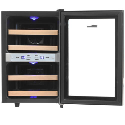 Дополнительно термоэлектрическая система охлаждения, сенсорное управление, 2 температурные зоны, голубая LED подсветка
