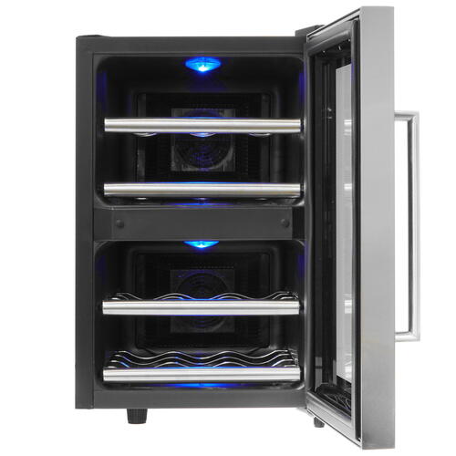 Дополнительно голубая LED подсветка, термоэлектрическая система охлаждения, сенсорное управление, 2 температурные зоны