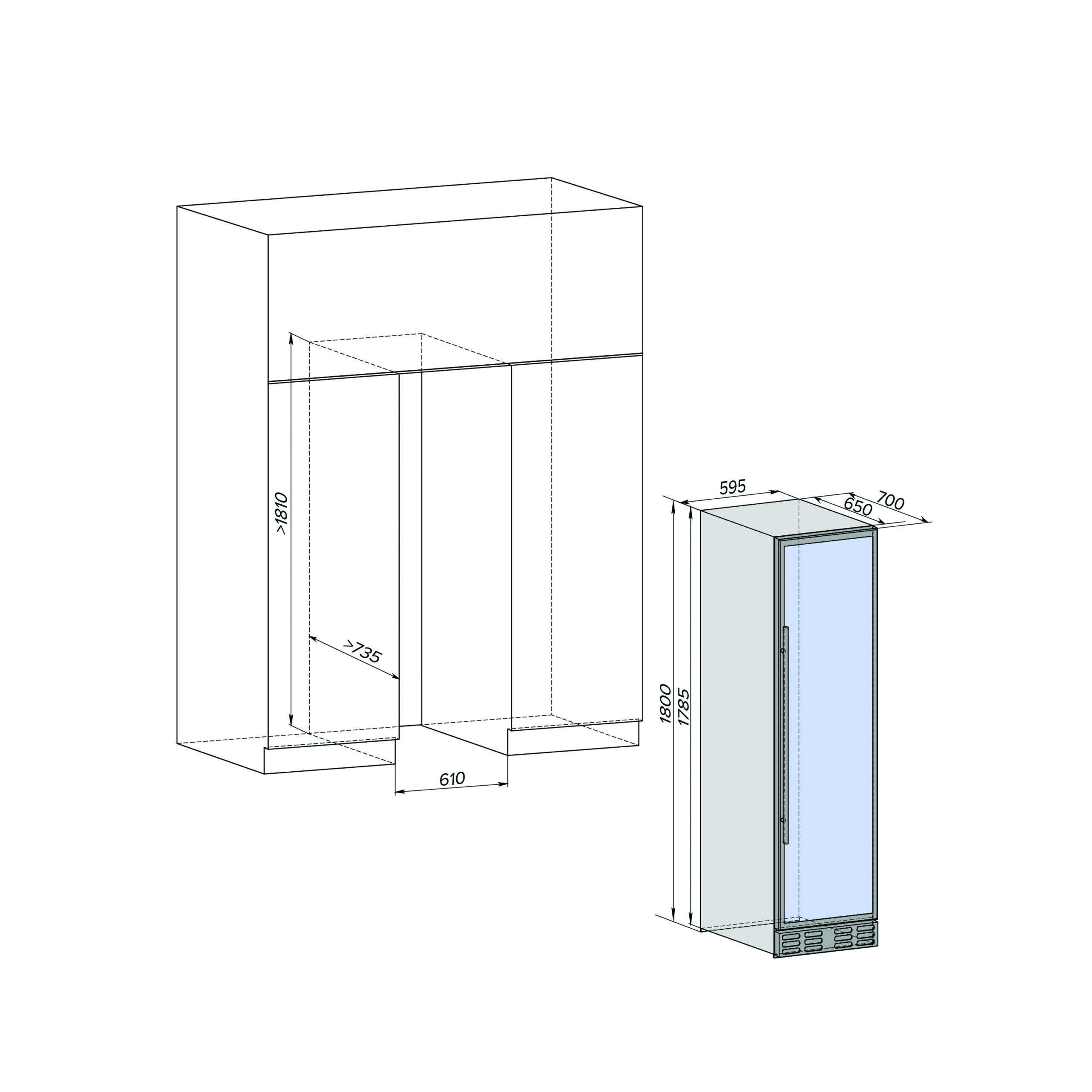 винный шкаф, инструкция, ключ замка дверцы, ручка и крепеж для ручки, угольный фильтр, комплект для перевешивания двери, полки