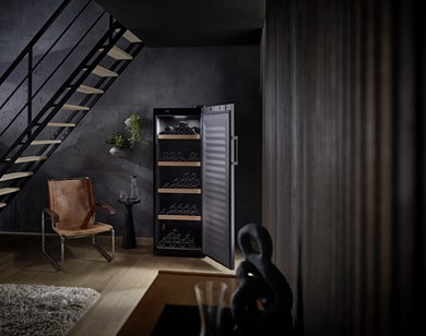 Винный шкаф Liebherr WSbl 5001 GrandCru с полезным объемом 385 литров. Вместимость бутылок благодаря хранению «горлышко к горлышку» 196 бутылок. Шкаф Липхер с глухой дверью доукомплектовывается модулем SmartDevice. Двойная защита: механический дверной замок (устанавливается дополнительно) и трехзначный PIN-код сохранят шкаф от несанкционированного вскрытия и изменения рабочих настроек. Функция HumiditySelect позволяет настроить на дисплее 2 уровня влажности: стандартный и высокий. Металлическая задняя стенка обеспечивает циркуляцию воздуха.