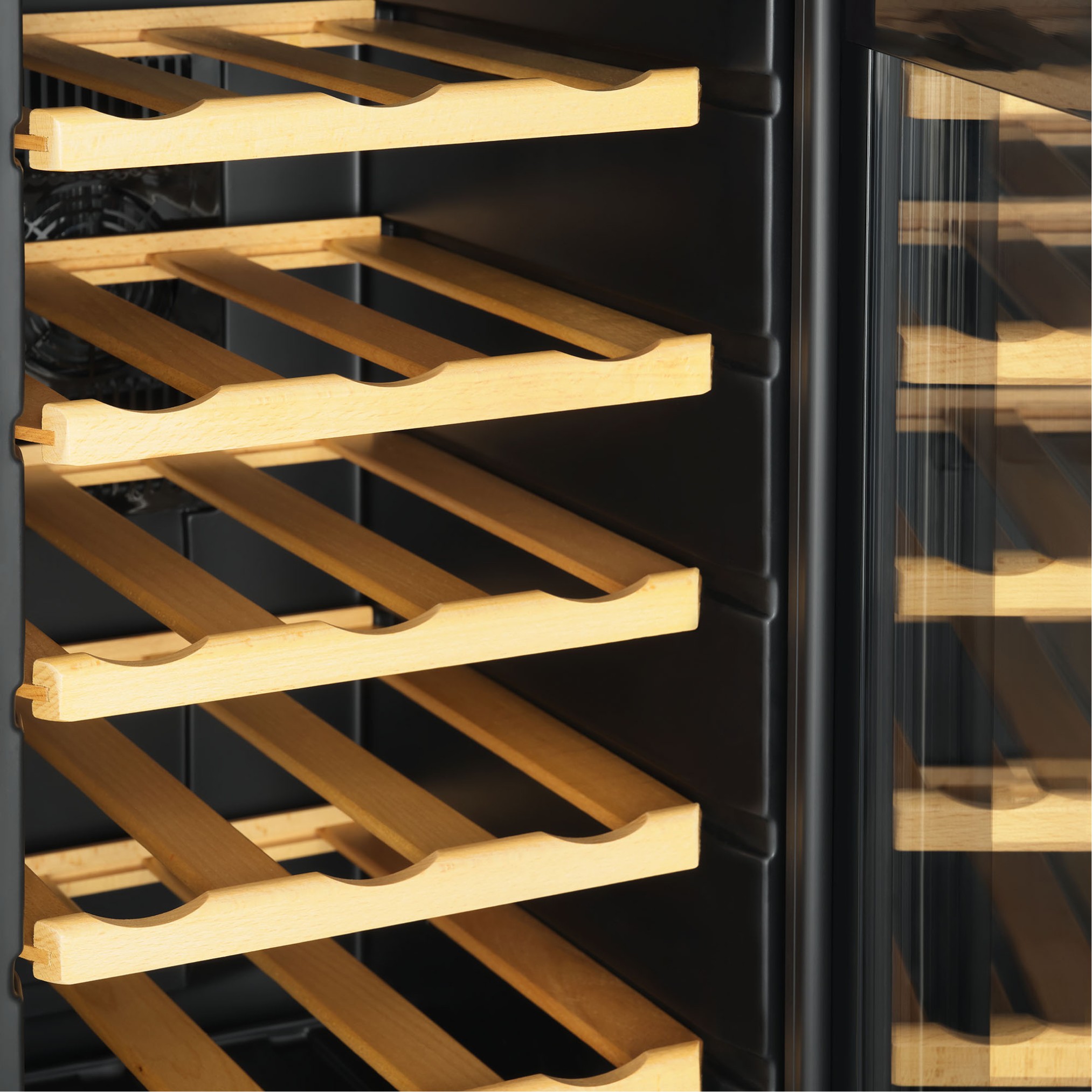 3 деревянные полки (каждая для 4 бутылок) + разделитель зон (4 бутылки)