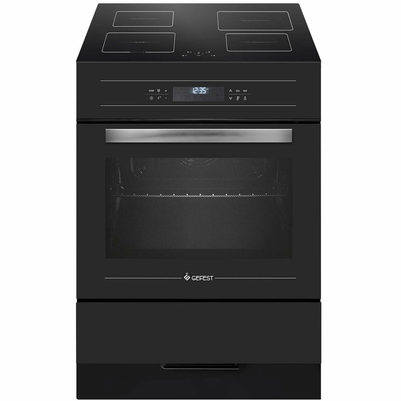 вертел, дисплей, подсветка духовки, часы, ящик для посуды