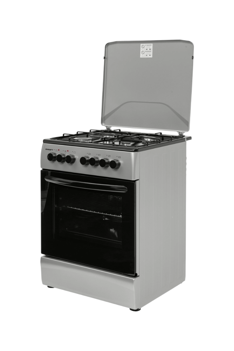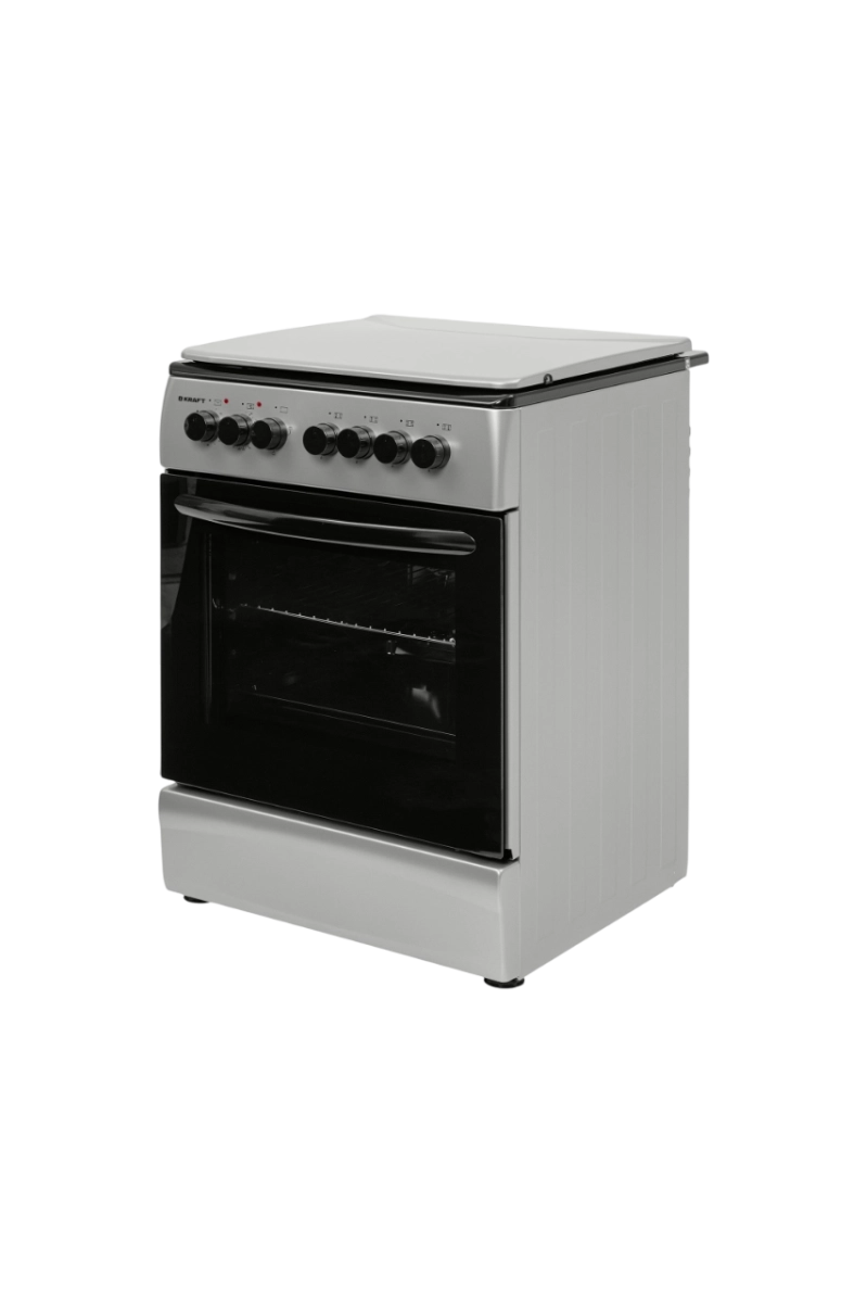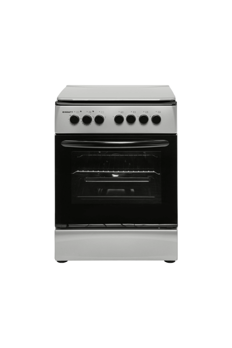 Комбинированная плита Kraft KF-FSK6402ES — это удобное решение для приготовления пищи. Управление подачей газа осуществляется с помощью поворотных переключателей, что обеспечивает простоту и комфорт в использовании.