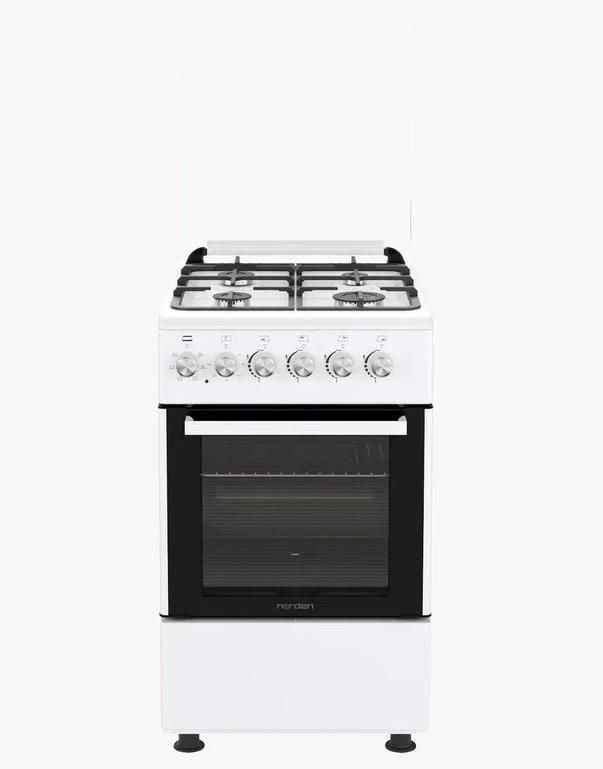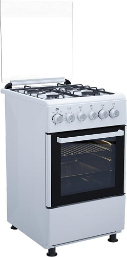 Плита отдельностоящая газовая с электрической духовкой 50х60 см, съемное внутреннее стекло (Cood Door), 4 конфорки с газ контролем , чугунная решетка, подсветка духовки, верхний нижний тэн, турбоконвекция. Стеклянная верхняя крышка, электроподжиг, 1 противень, 1 решетка, нижний ящик для посуды, объём духовки 52 л. В комплекте: кабель, вилка, жиклеры, штуцер, регулируемые ножки. Цвет Белый. Упаковка картон