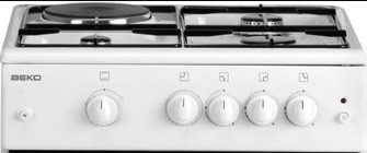 | Тип варочной поверхности | комбинированная | | Управление конфорками | поворотные переключатели |  |  | | Духовка | | Тип духовки | газовая | | Объем духовки | 50 л | | Функции | термостат вертел электрогриль подсветка духовки