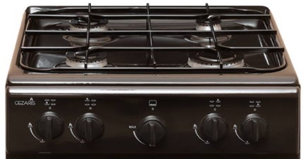 | | Варочная поверхность | | Рабочая поверхность | эмалированная | | Кол-во газовых конфорок | 4 | | Решетки конфорок | стальные |  |  | | Дополнительно | | Газ-контроль | духовки |  |  | | Общие характеристики | | Габариты (ВхШхГ) | 85x51x55 см |