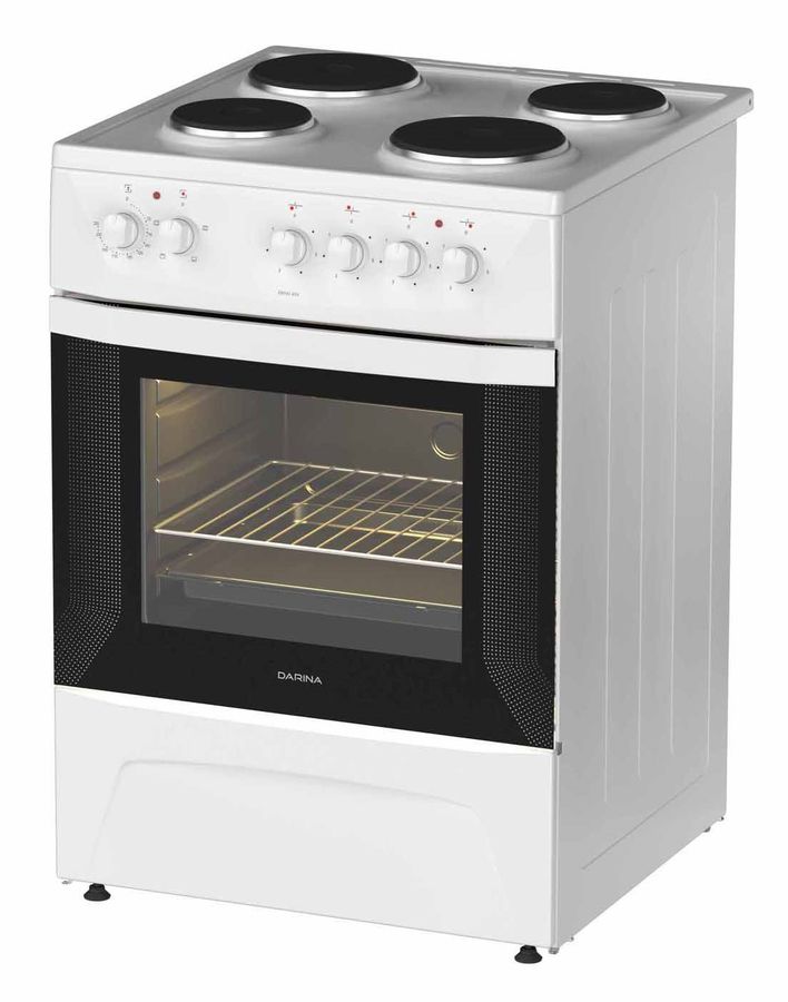Особенности Плита электрическая с 4 чугунными электроконфорками, стиль панорамный объемный, терморегулятор, пятипозиционный переключатель режимов жарочного шкафа, ступенчатые переключатели режимов работы электроконфорок, освещение, выдвижной ящик.