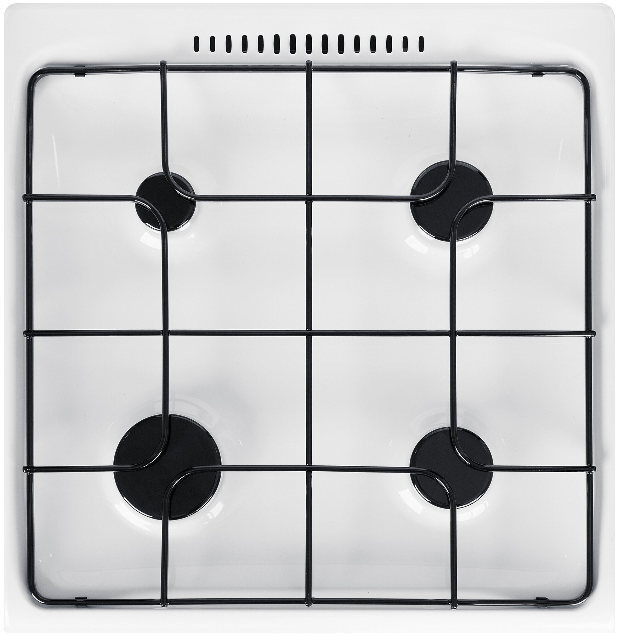 термоуказатель; штампованные направляющие духовки; регулировочные ножки; стальные решетки горелок стола; металлическая крышка; класс электробезопасности: II; масса нетто: 38.5 кг