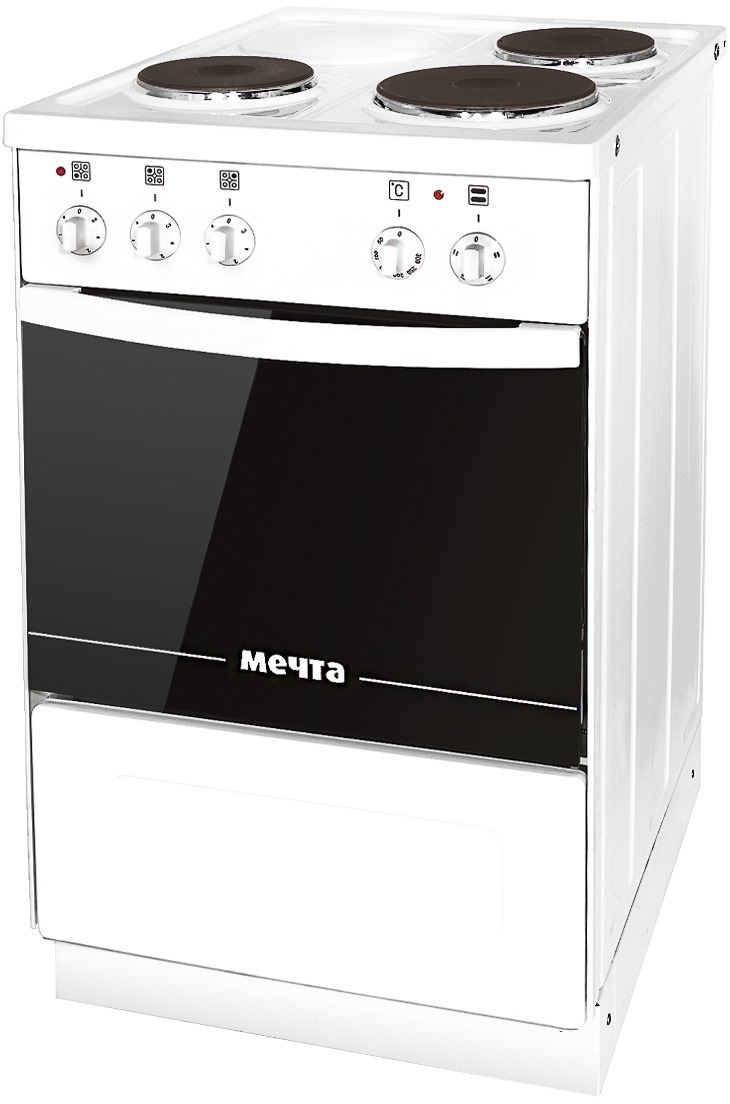 | Тип варочной поверхности | электрическая | | Управление конфорками | поворотные переключатели |  |  | | Духовка | | Тип духовки | электрическая | | Объем духовки | 49 л | | Максимальная температура | 300 °C | | Функции | термостат подсветка духовки
