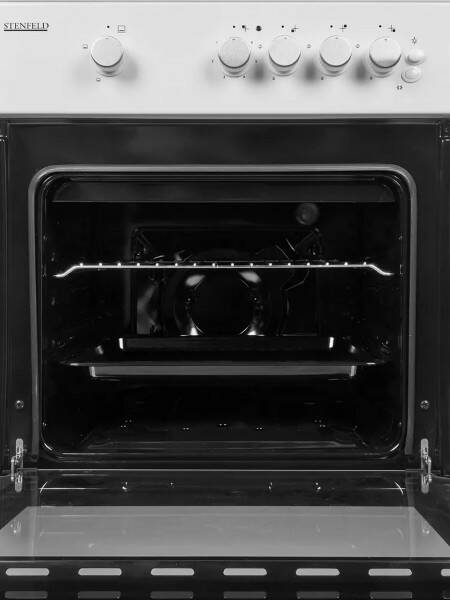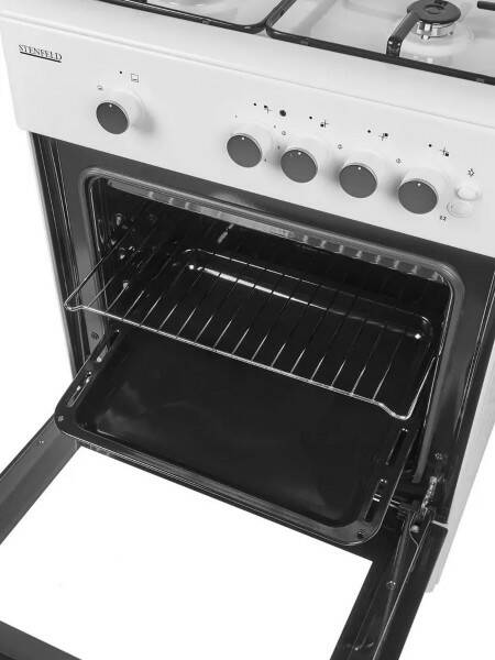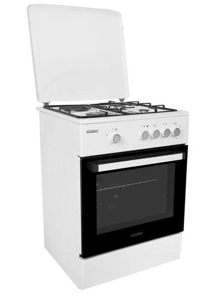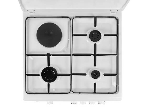 3 газовых +1 электрическая конфорки, газовая духовка, электроподжиг стола и духовки, подсветка и газ-контроль духовки.