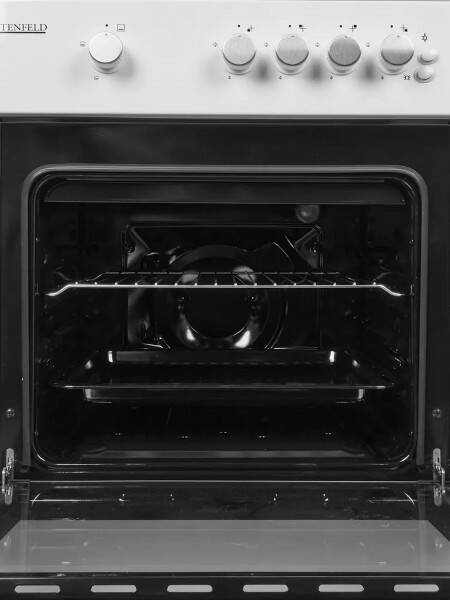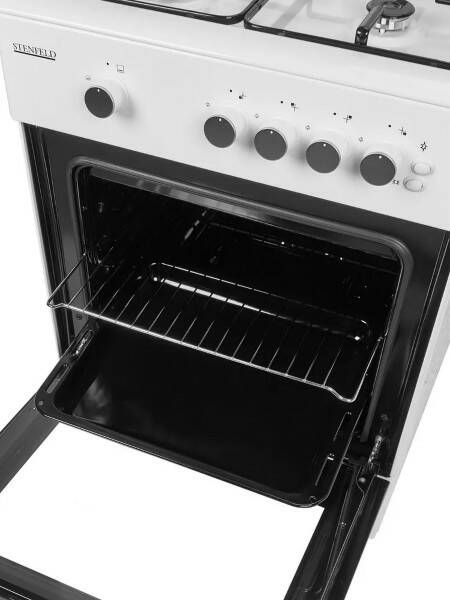 4 газовых конфорки, газовая духовка с газ-контролем 65 литров, электро - поджиг стола и духовки, подсветка духовки.