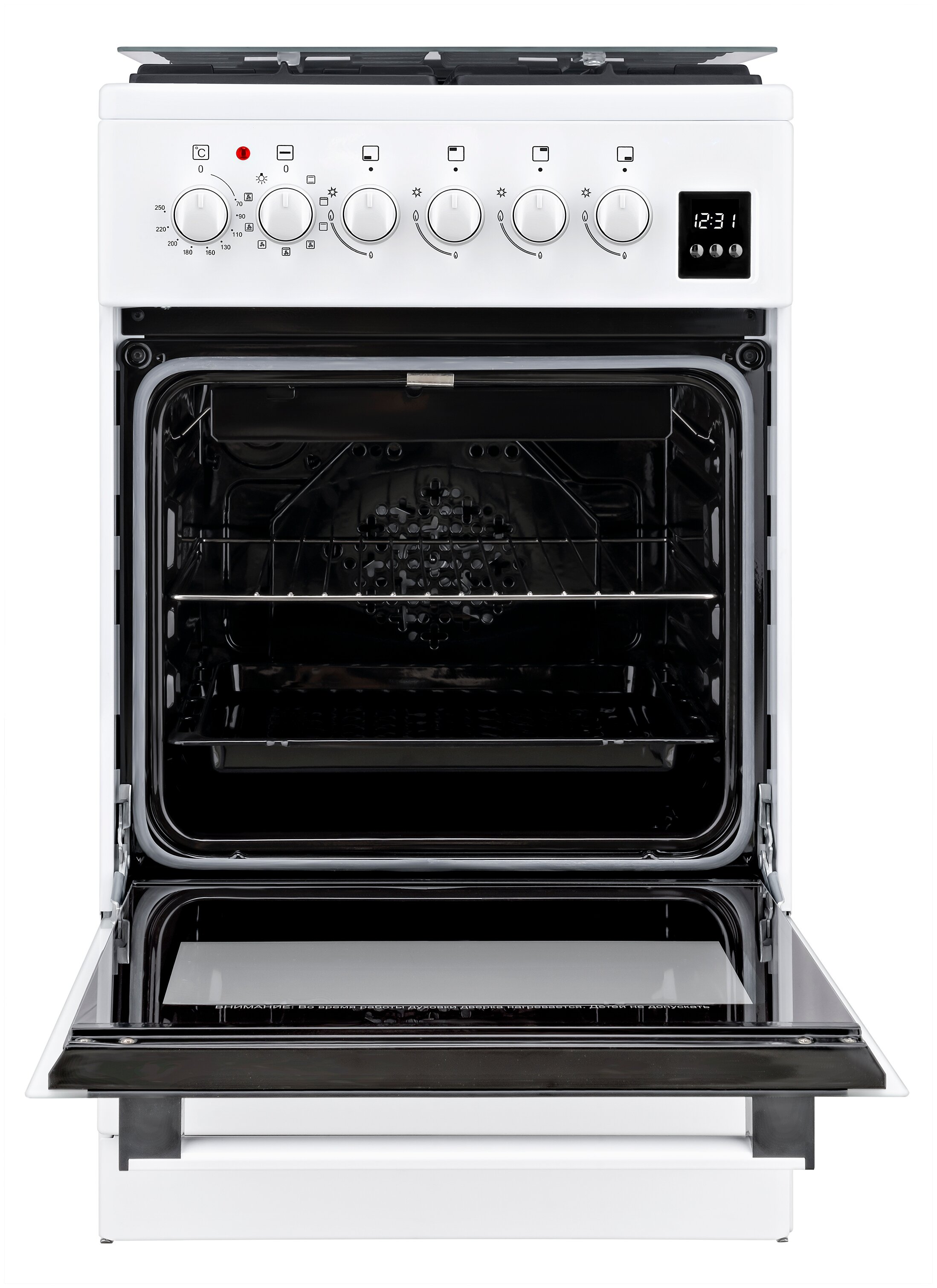 мощность конфорок 1х3 кВт, 2х2 кВт, 1х1 кВт; мощность духовки 3,5 кВт; комплект для подключения сжиженного газа