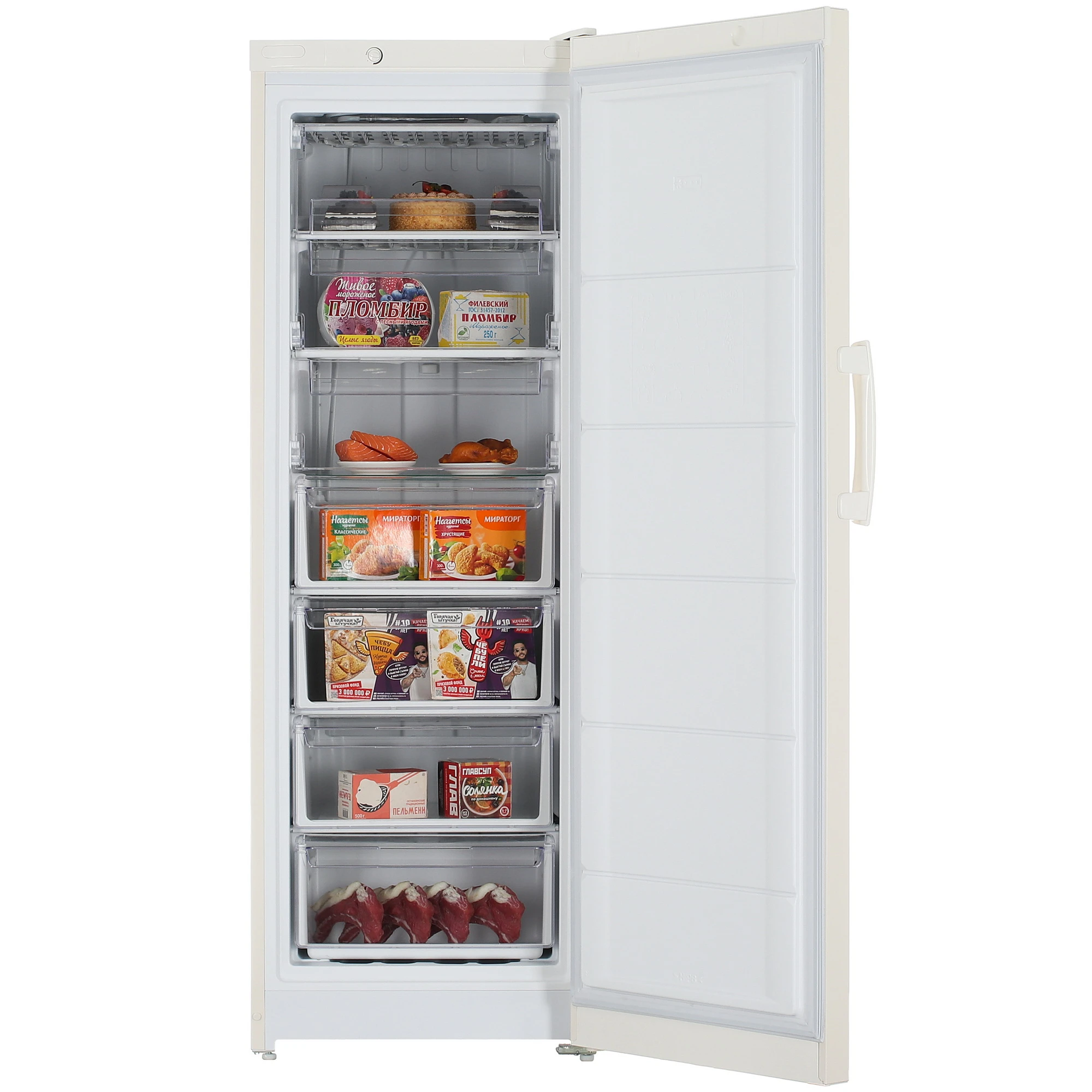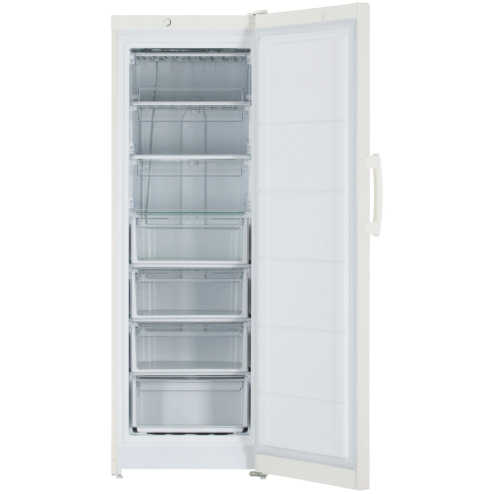 Морозильный шкаф Indesit DSZ 5175 E имеет внешнее покрытие из эмалированной стали бежевого цвета, устойчивое к появлению царапин и ржавчины. Конструкцией предусмотрено 7 ящиков с прозрачными стенками, позволяющими отслеживать остаток содержимого. Подключение к сети производится через 1.7-метровый кабель.