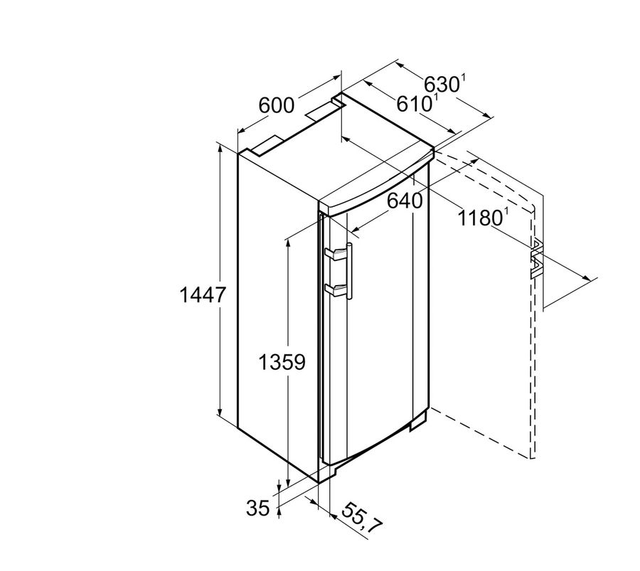 Размеры (ШхВхГ) 60 х 144.7 х 63 см