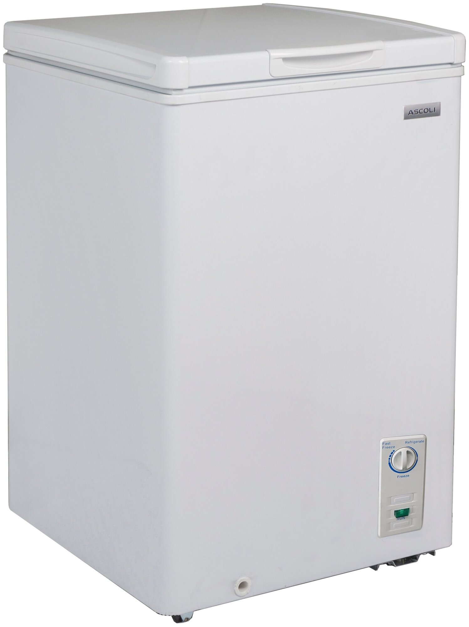 Морозильный ларь Ascoli AWS-105C отлично подойдёт для эксплуатации как в торговых организациях, так и, например, на даче. В его камере объёмом 105 л поместятся большие куски мяса, курица и овощные полуфабрикаты. Прибор оснащён электронным термостатом, который позволяет отрегулировать температуру в зависимости от условий окружающей среды и количества хранящихся продуктов. Всего вам доступно два режима: охлаждение от 0 до 10° и замораживание до -18°. Когда слой инея внутри устройства увеличится, его следует удалить. Для этого отключите питание, откройте дверцу ларя и дождитесь таяния наледи. Образовавшуюся влагу нужно убрать мягкой тканевой салфеткой. Даже если ваш дом останется без света, пища в Ascoli AWS-105C не испортится. Ведь оптимальный микроклимат в нём будет поддерживаться автономно в течение целых 10 часов. В съёмной проволочной корзине с виниловым покрытием можно хранить небольшие упаковки с едой. А для удобного доступа к продуктам на дверце есть ручка-выемка.