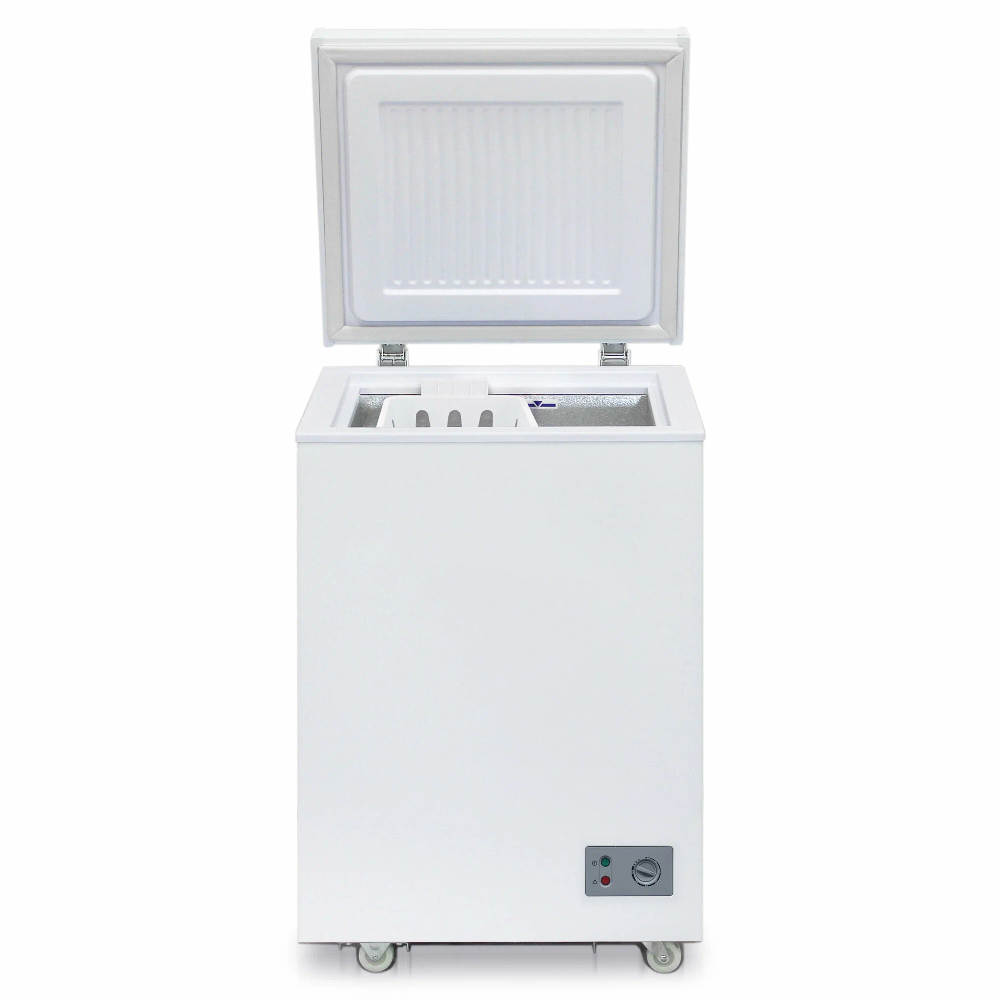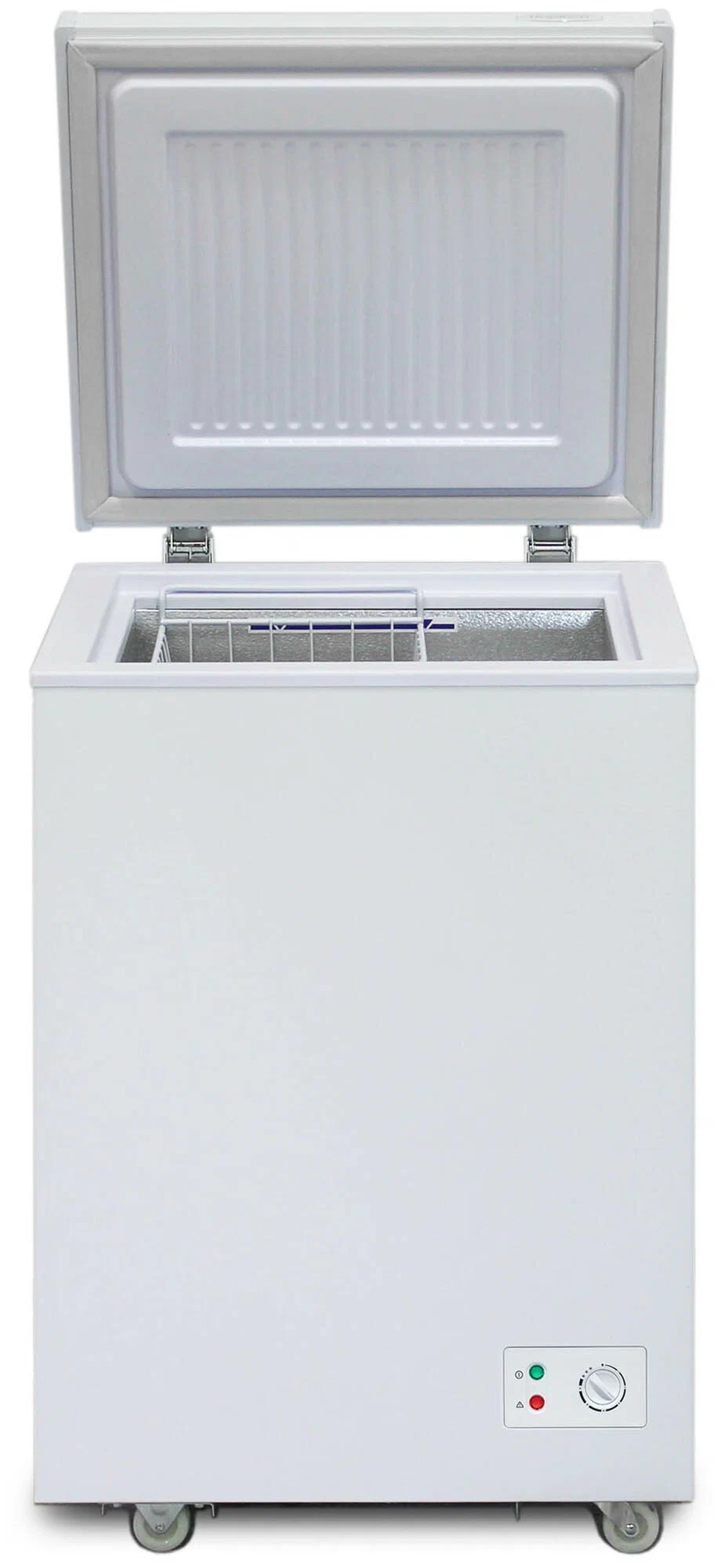 Морозильный ларь Бирюса 100KX оснащен световым индикатором включения и поворотным переключателем, предназначенным для настройки параметров устройства. Модель оборудована системой сигнализации, которая оповещает пользователя о нежелательном повышении температуры внутри камеры. Корзина морозильного ларя произведена из качественного металлического сплава. Прочный материал способен выдерживать перепады температуры без риска деформации и излома, что продлевает период эксплуатации устройства. Модель функционирует с использованием экологичного хладагента R600a.