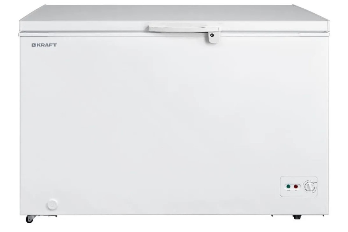 Морозильный ларь Kraft BD(W)-432QX станет отличным приобретением для квартиры, дома, отеля, офиса, либо промышленного помещения. Устройство позволяет хранить большой объем продуктов питания и полуфабрикатов длительное время. Благодаря лаконичной белой расцветке корпуса модель впишется в любой интерьер. Устройство имеет высокий класс энергоэффективности – А+. Общий объем морозильного ларя достигает 430 л. Для комфортного хранения продуктов в камере предусмотрены 2 подвесные корзины. Работа прибора сопровождается низким уровнем шума, не превышающим предела в 44 дБ. При отключении электроэнергии прибор способен поддерживать низкую температуру в течение 55 часов.