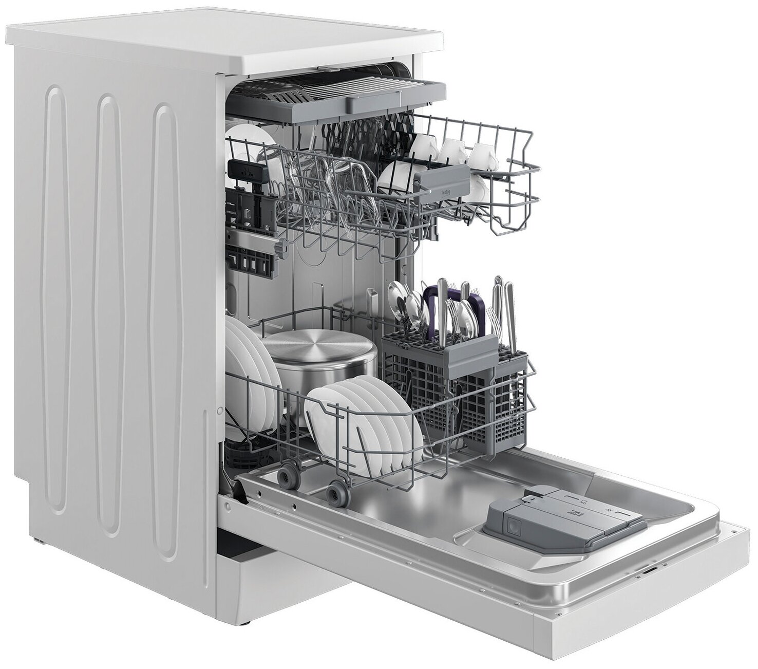 дисплей, регулируемая по высоте корзина для посуды, таймер отсрочки