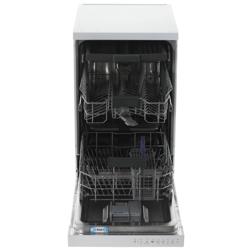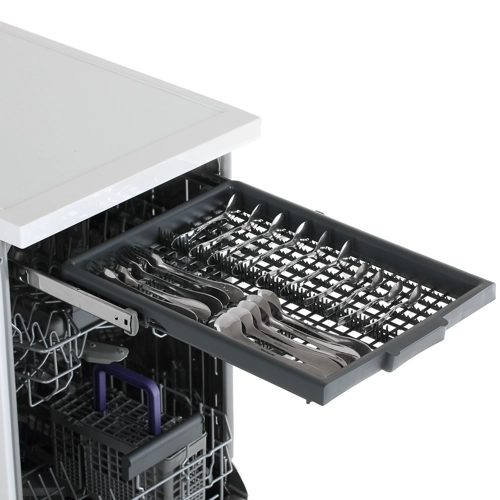 За счет защиты от протечек вам не придется волноваться, что прибор может затопить соседскую и вашу квартиру, пока вас нет рядом. Конденсационная сушка сделает столовые принадлежности сухими после мытья. Чтобы с посудомоечной машиной было легко управляться, она оснащена дисплеем, таймером и кнопками. С их использованием можно выбрать необходимый из 8 режимов работы и отрегулировать температуру воды в диапазоне от 35 до 70°.