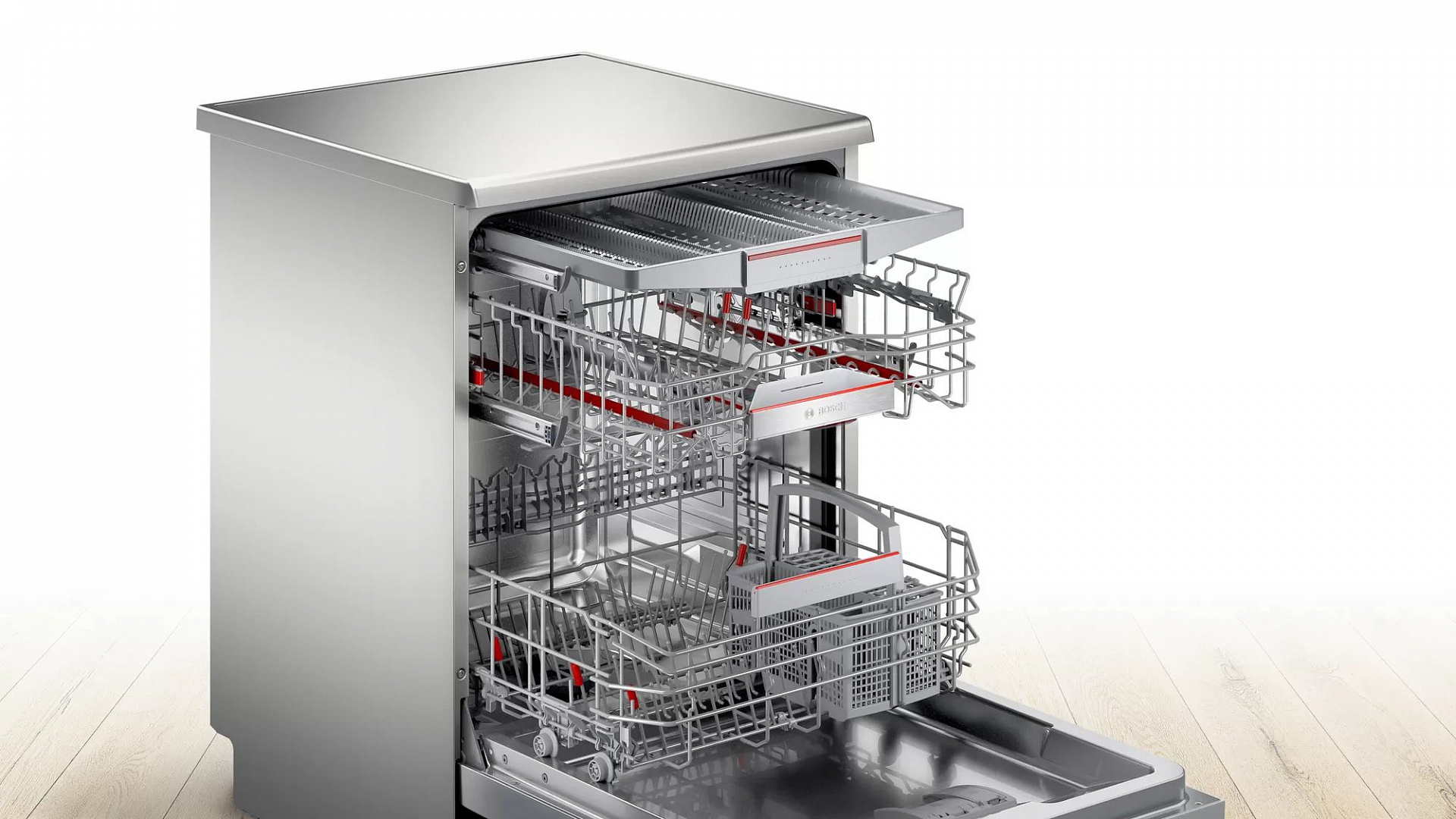 Винтовые опоры, дисплей, поддон для столовых приборов, полка для чашек, регулировка высоты корзин, съемные насадки разбрызгивателей